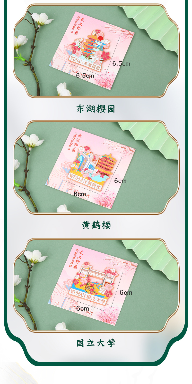 武汉大学国风金属冰箱贴黄鹤楼文创旅游纪念品伴手礼小礼品冰箱贴