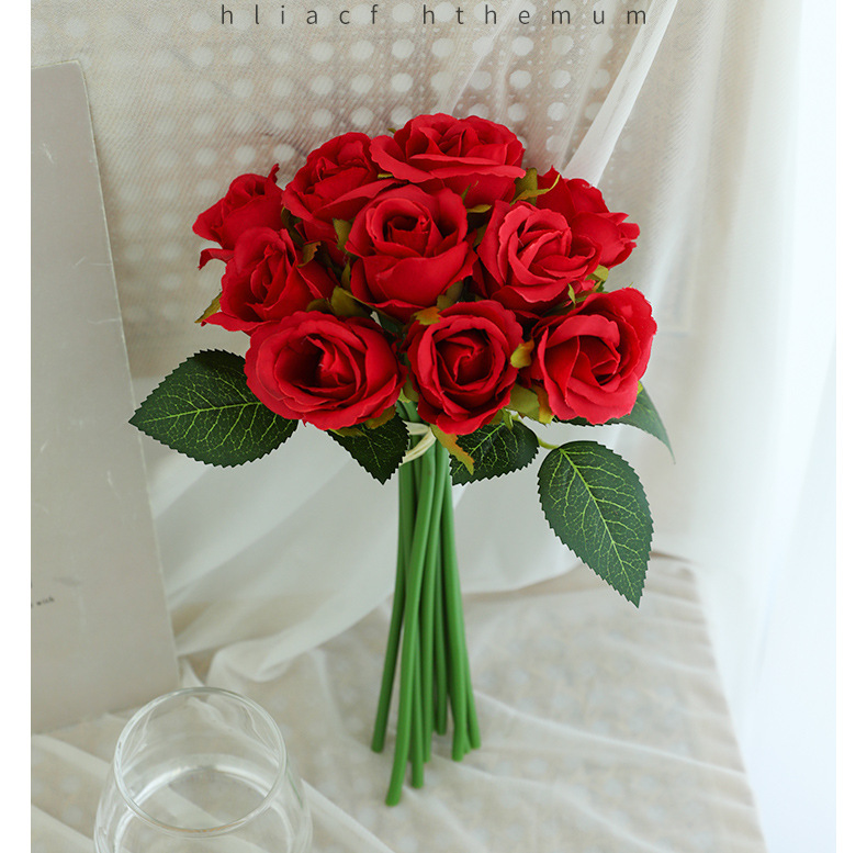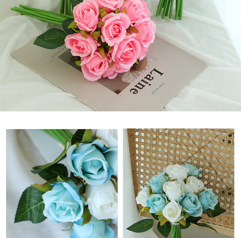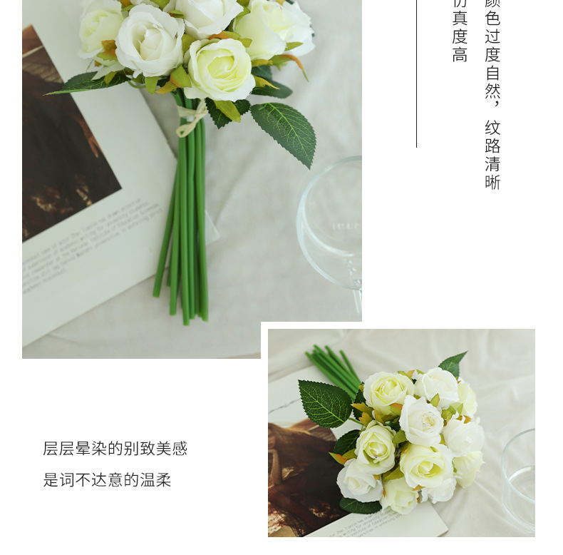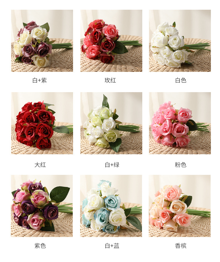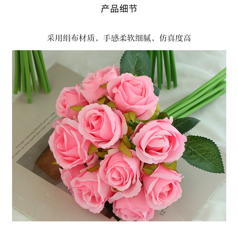 厂家直销仿真12头小玫瑰花高档绢布假花新娘婚纱摄影diy手捧花束