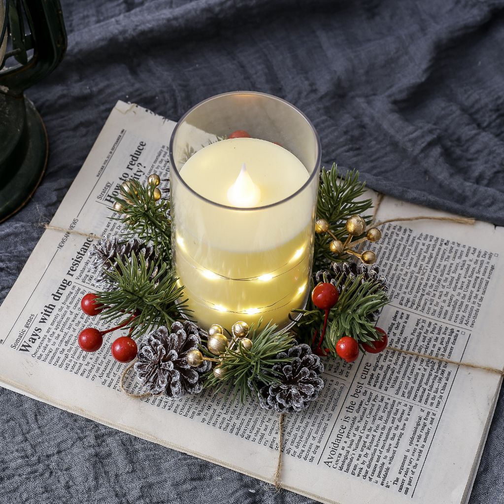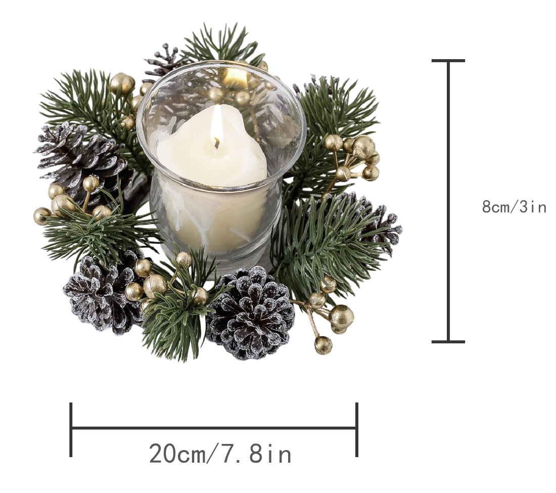 跨境新品圣诞节香薰蜡烛烛台花环圈桌面家居装饰品仿真松果摆件