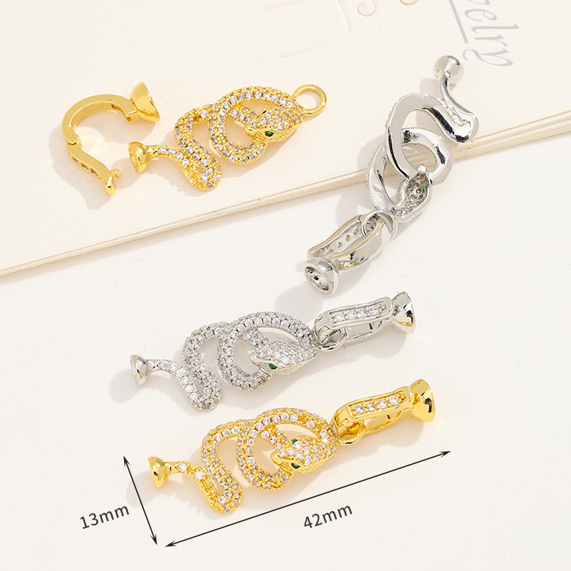 铜镀真金蛇形收尾扣项链手链连接扣头 diy饰品收尾拉绳扣配饰配件