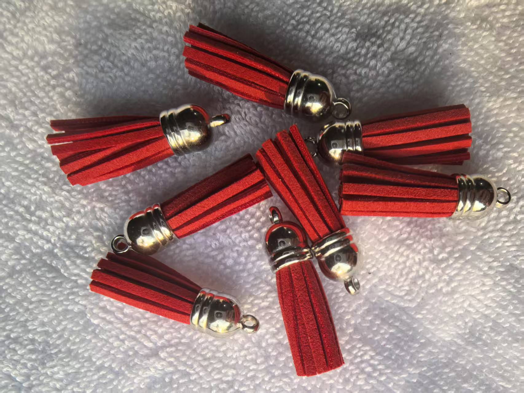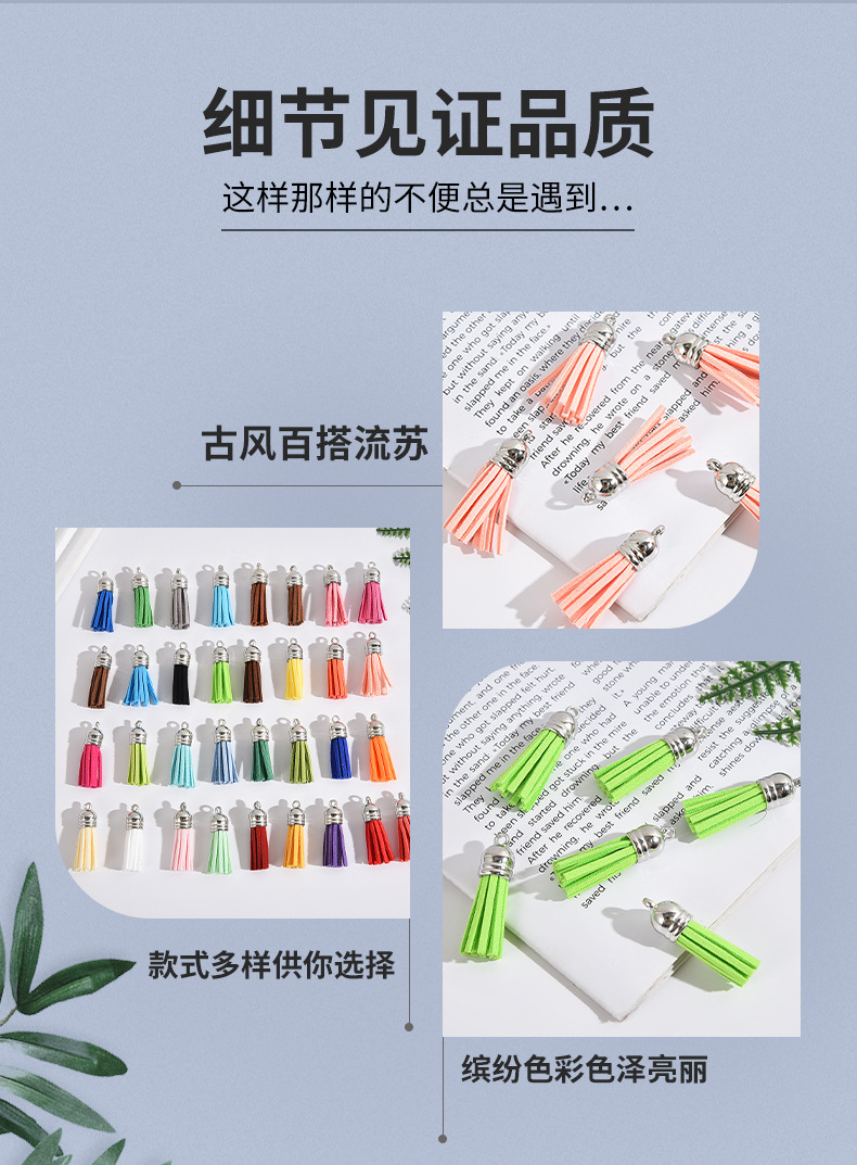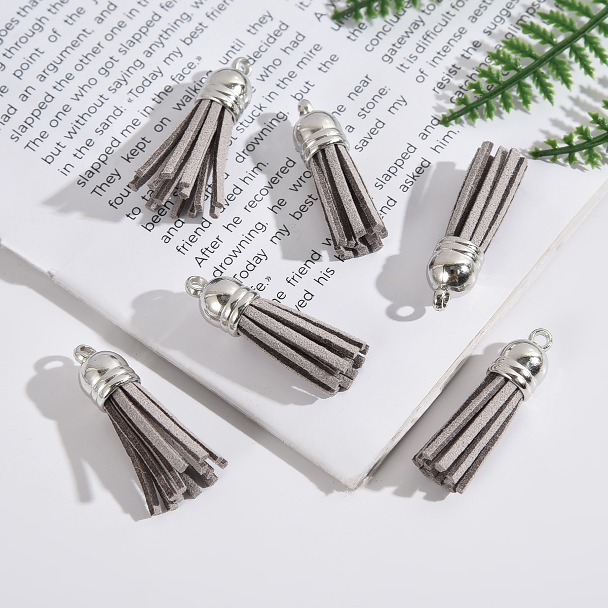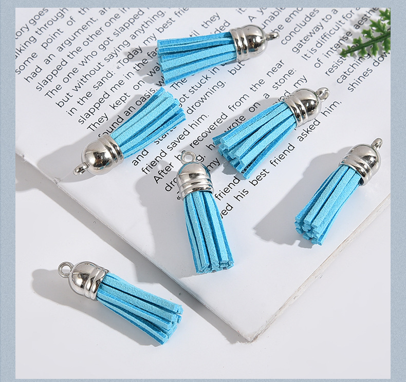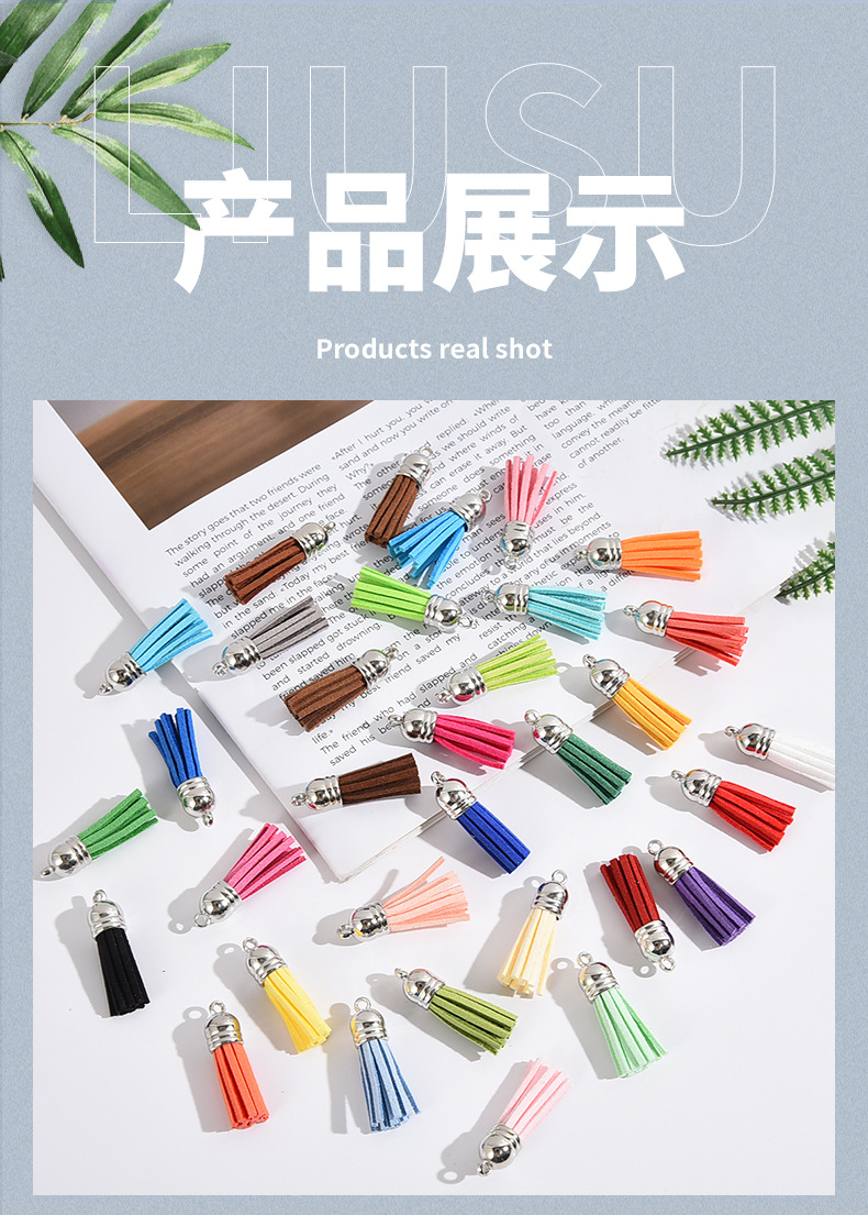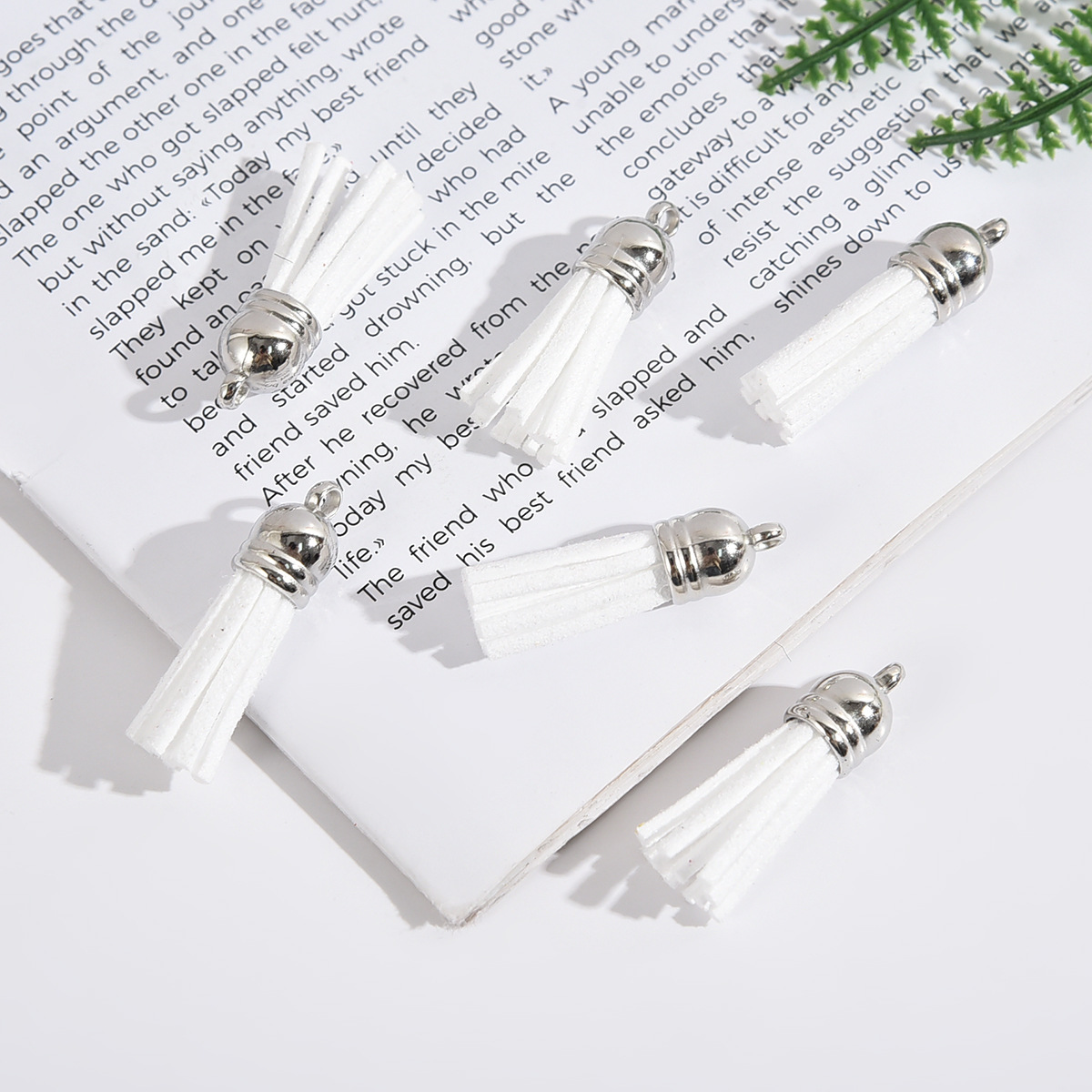 跨境热卖银色帽头流苏吊坠配件韩国绒3CM白K银帽钥匙扣饰品辅料