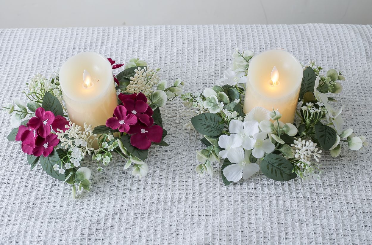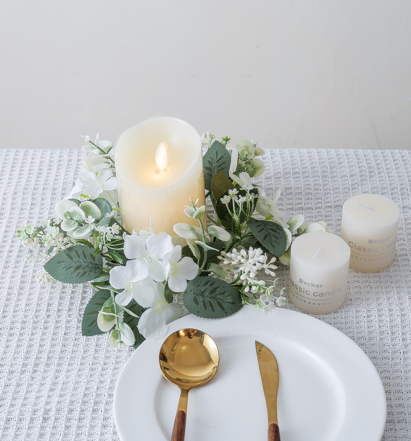 跨境家用餐桌仿真绣球花蜡烛杯烛台花环圈装饰派对结婚庆布置花环