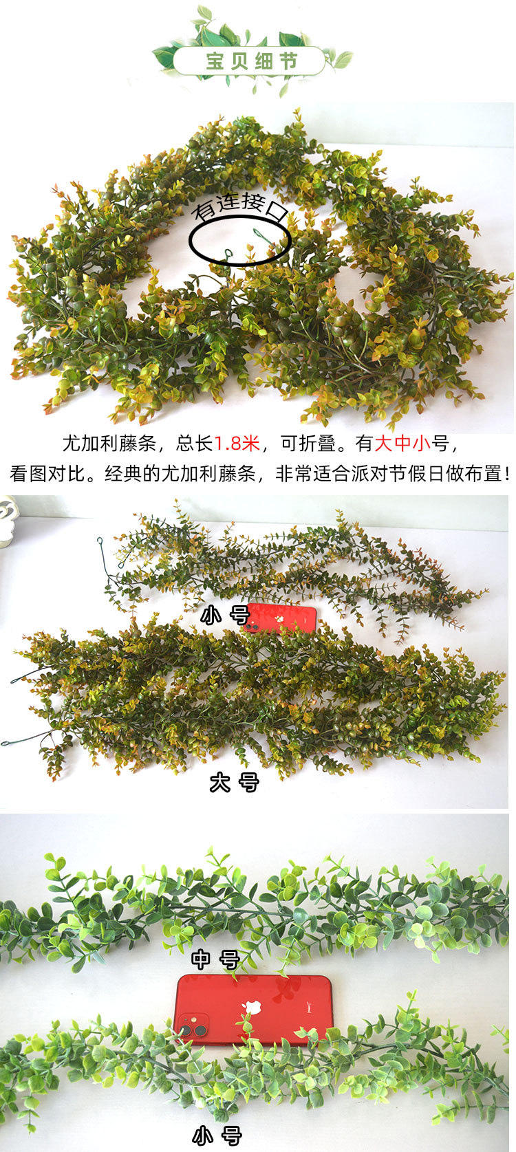 1.8米跨境人造桉树藤条仿真绿色尤加利草藤曼婚礼背景拱形墙软装