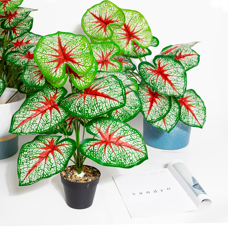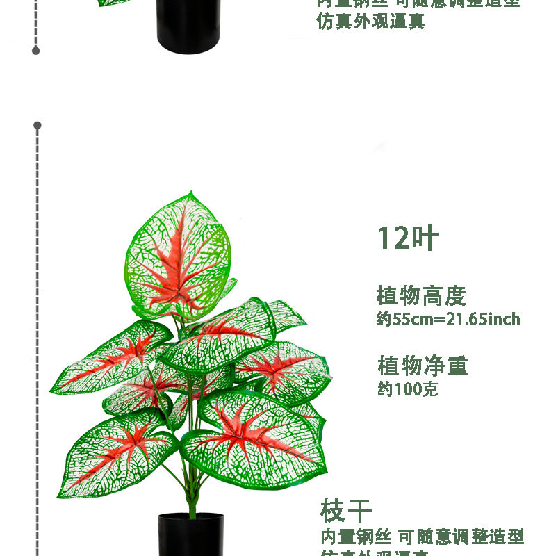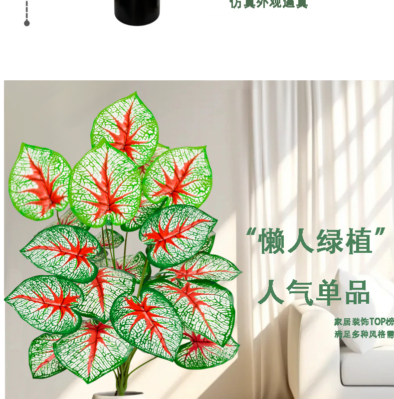 跨境新品仿真绿植滴水观音大红假花造景装饰婚庆酒店北欧风装饰