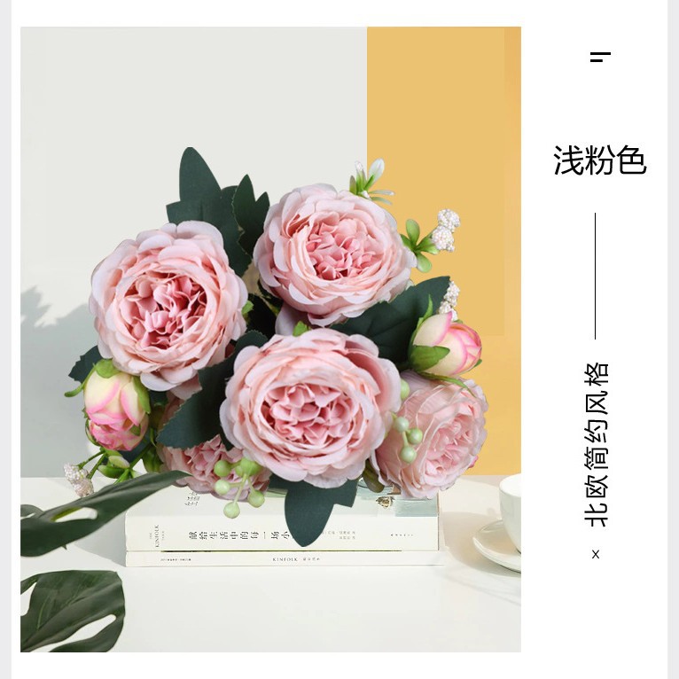 现货供应 九头包芯牡丹仿真娟花 西洋玫瑰婚庆家居装饰假花洋玫瑰
