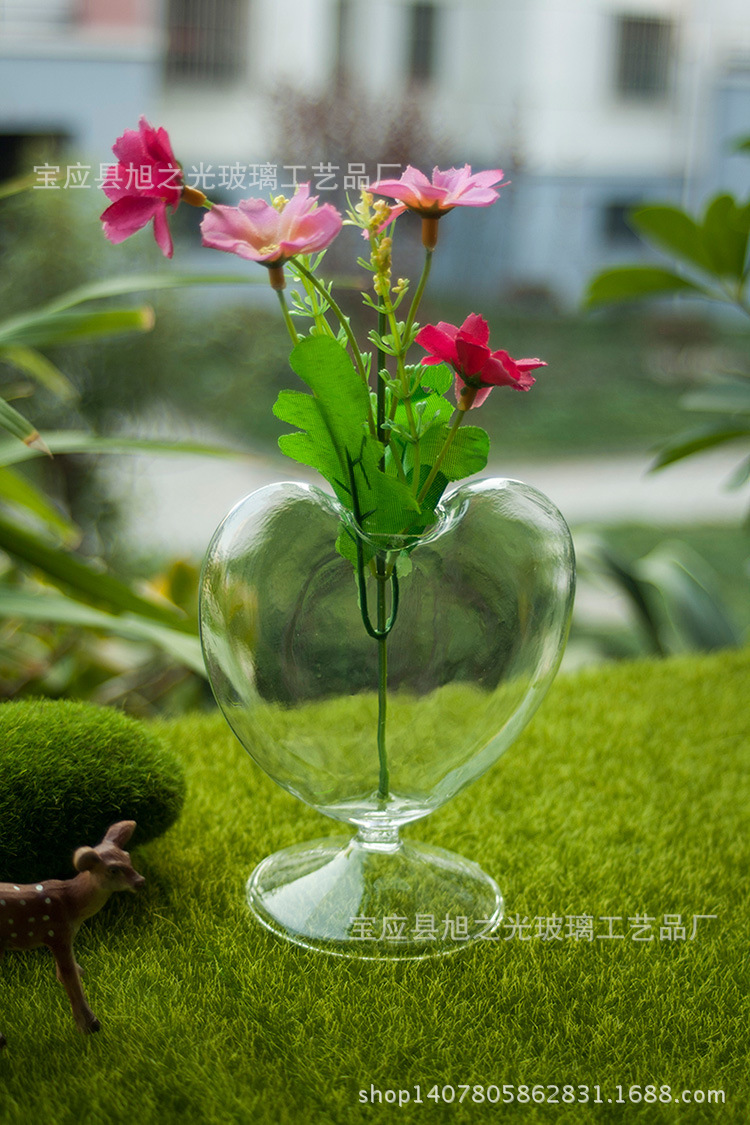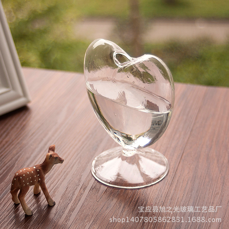 批发爱心造型水培玻璃花瓶 工艺品手工吹制插花花瓶创意水培摆件