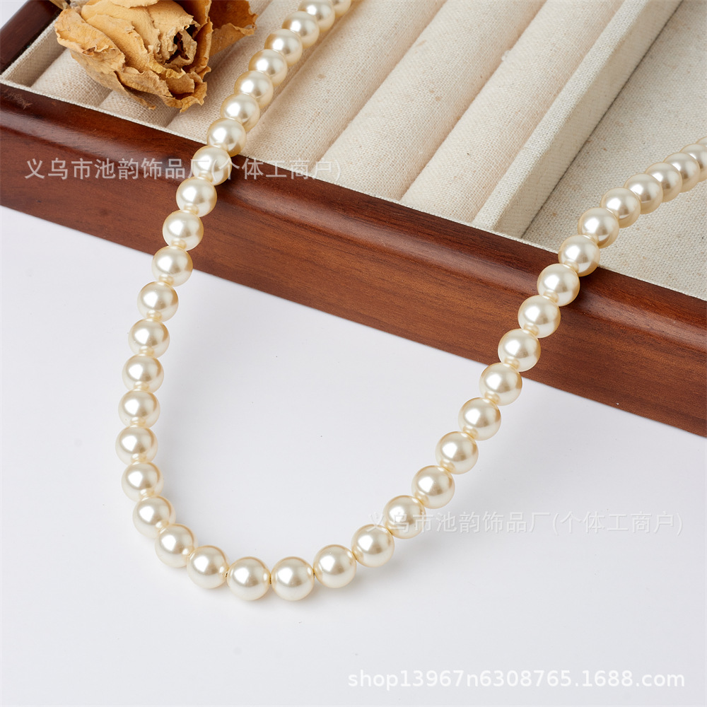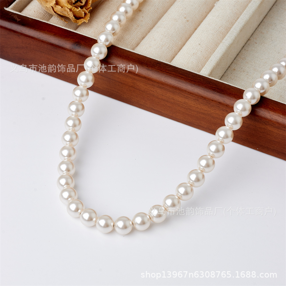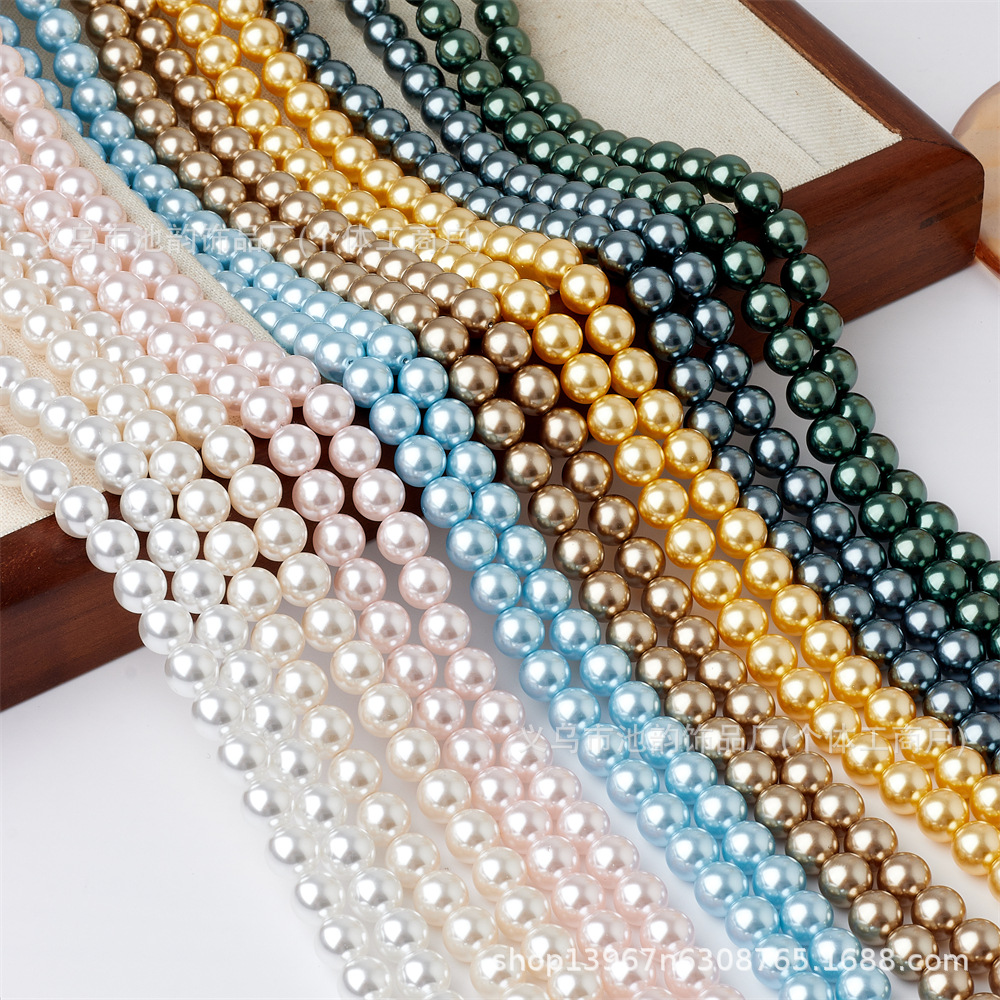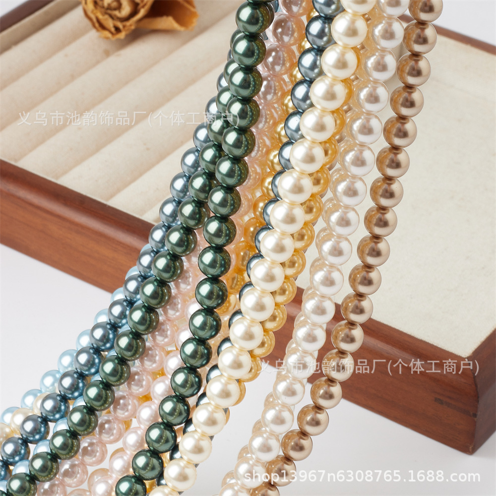 仿施家珍珠650高品质仿贝珠玻璃珠项链diy饰品配饰件散珠通孔批发