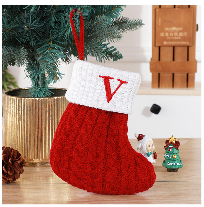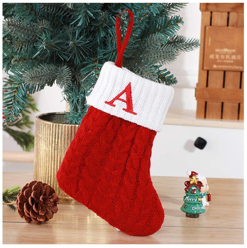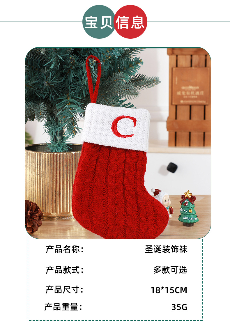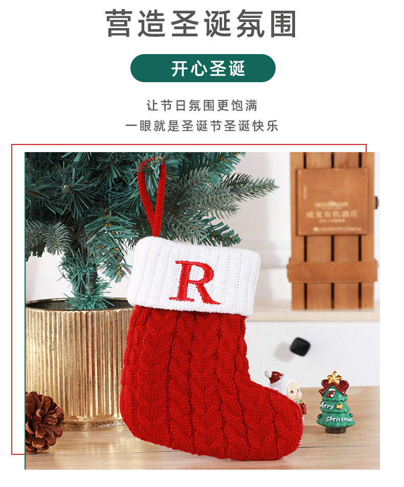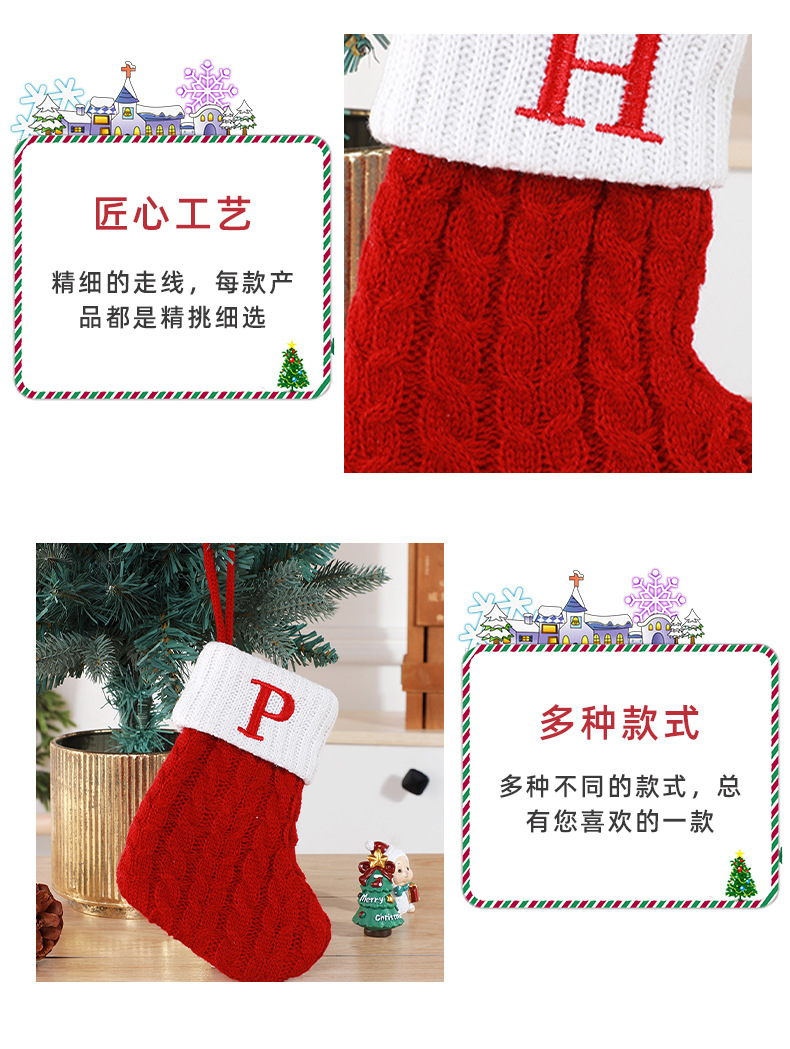 可爱字母圣诞袜装饰创意圣诞树挂件圣诞风毛线针织袜子装饰道具