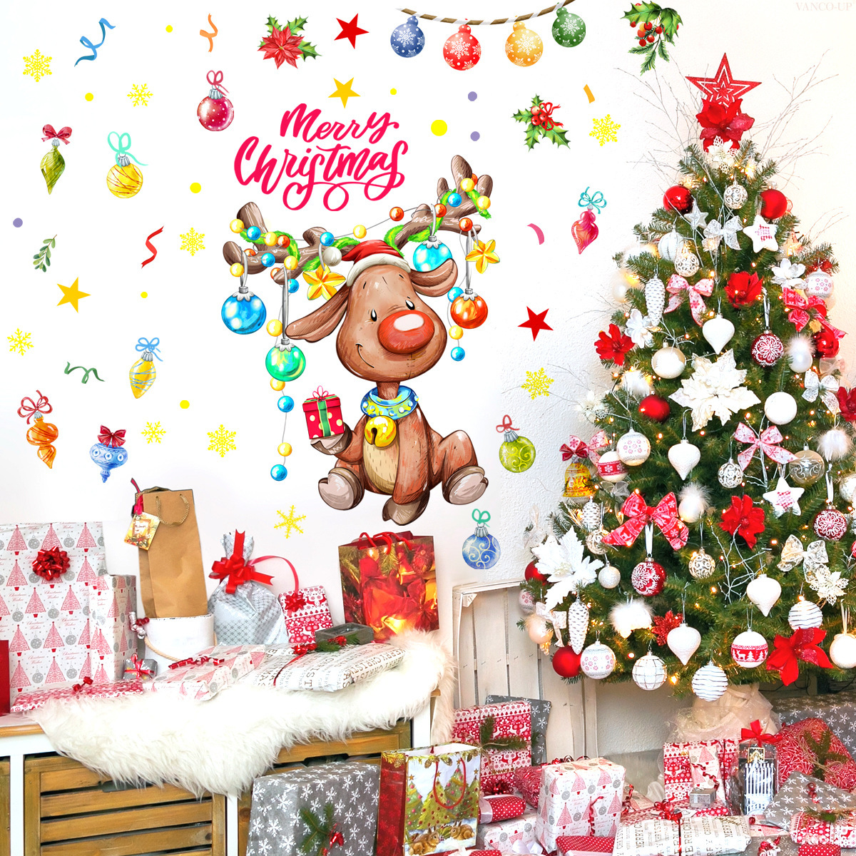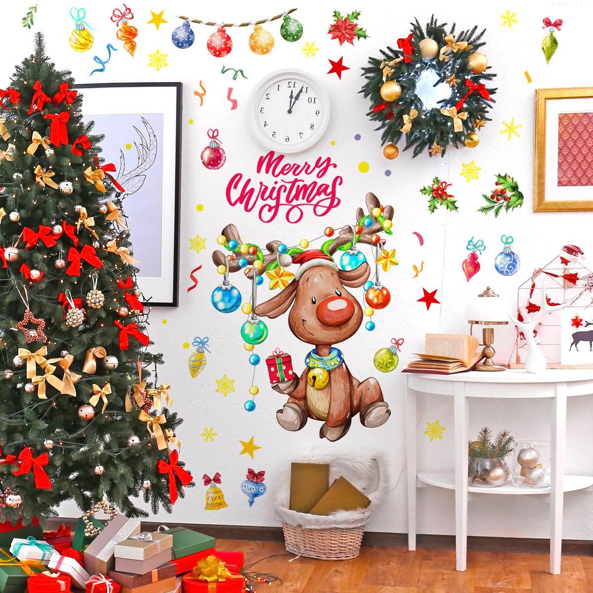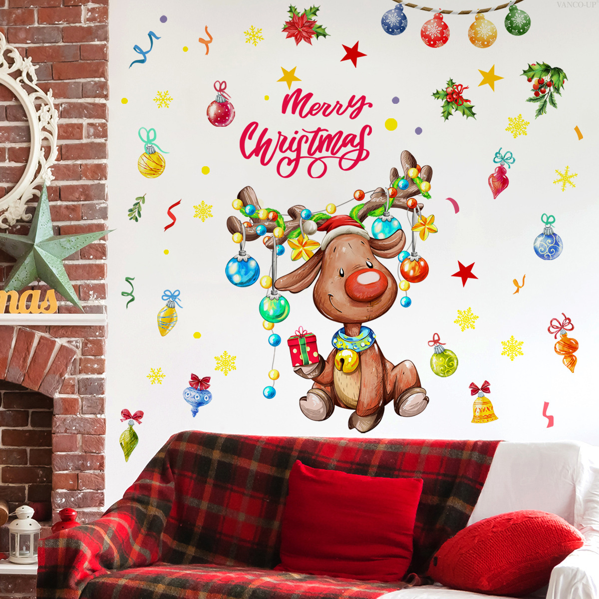 M14674圣诞节元素卡通麋鹿墙贴客厅卧室家居节日装饰墙贴自粘