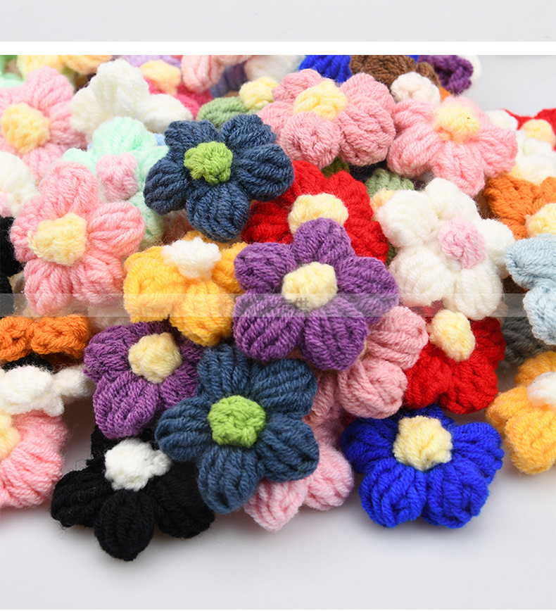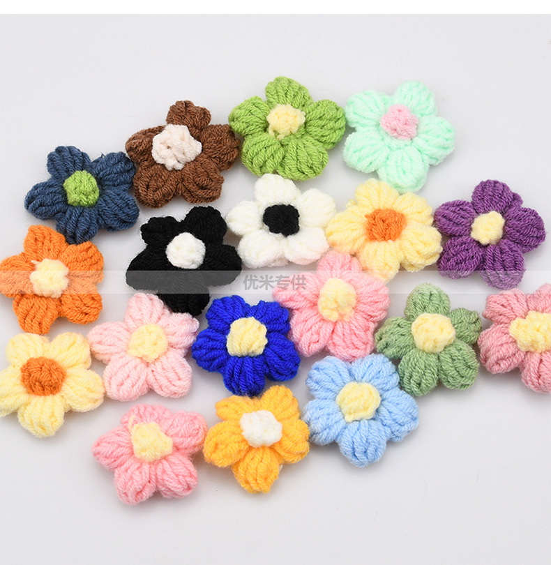 diy配饰饰品配件毛线泡芙花钩花手工花钩织花朵别针胸针发夹小花
