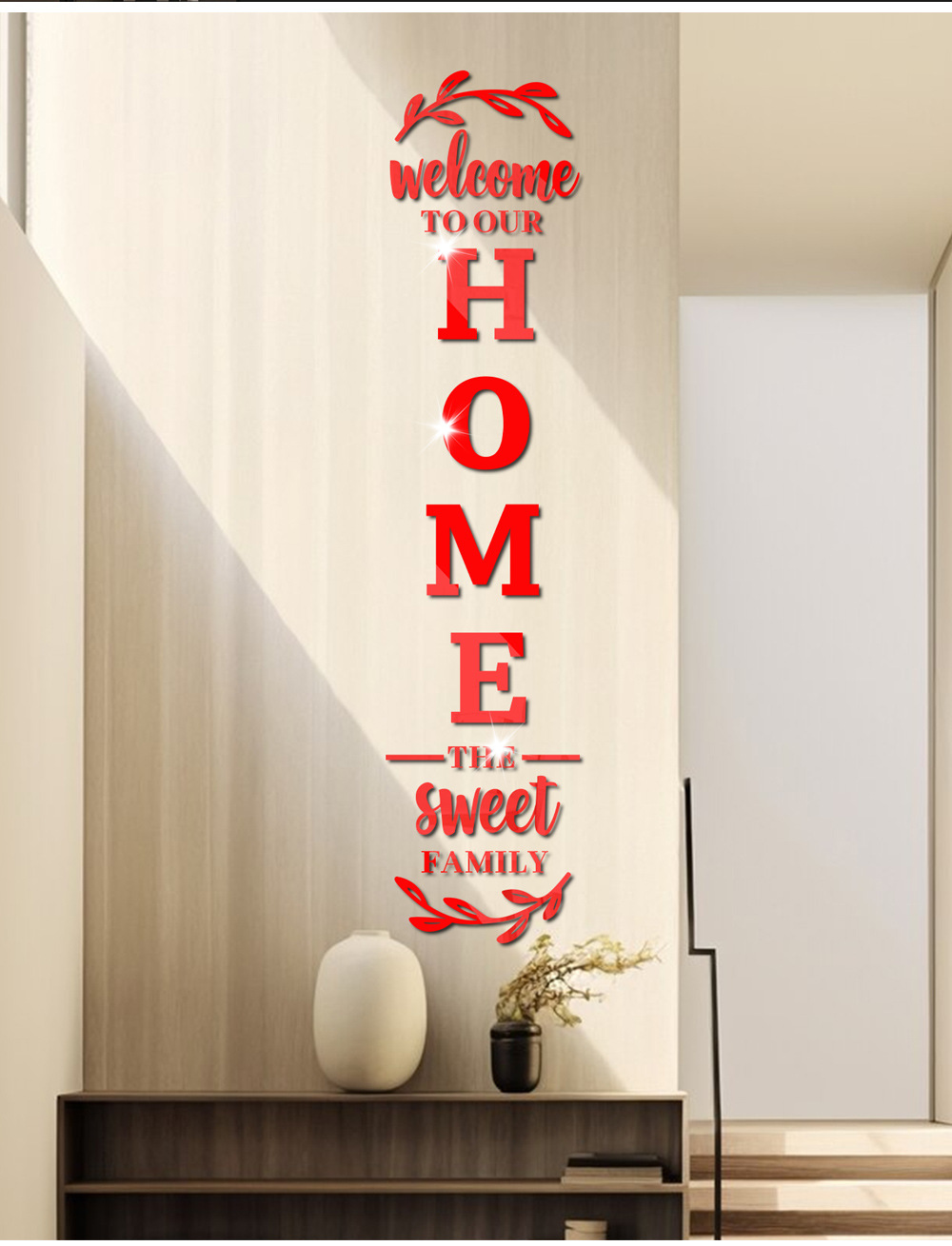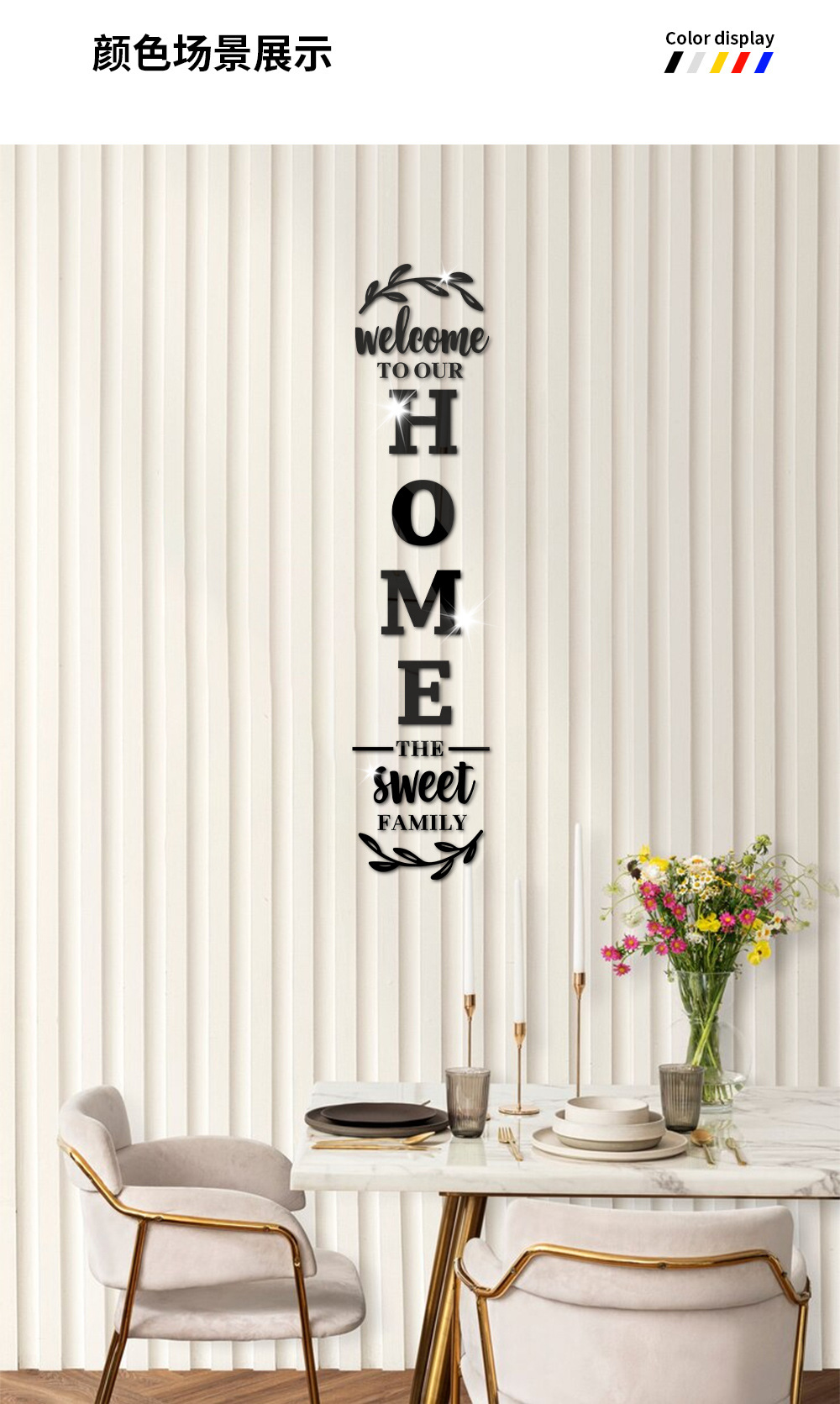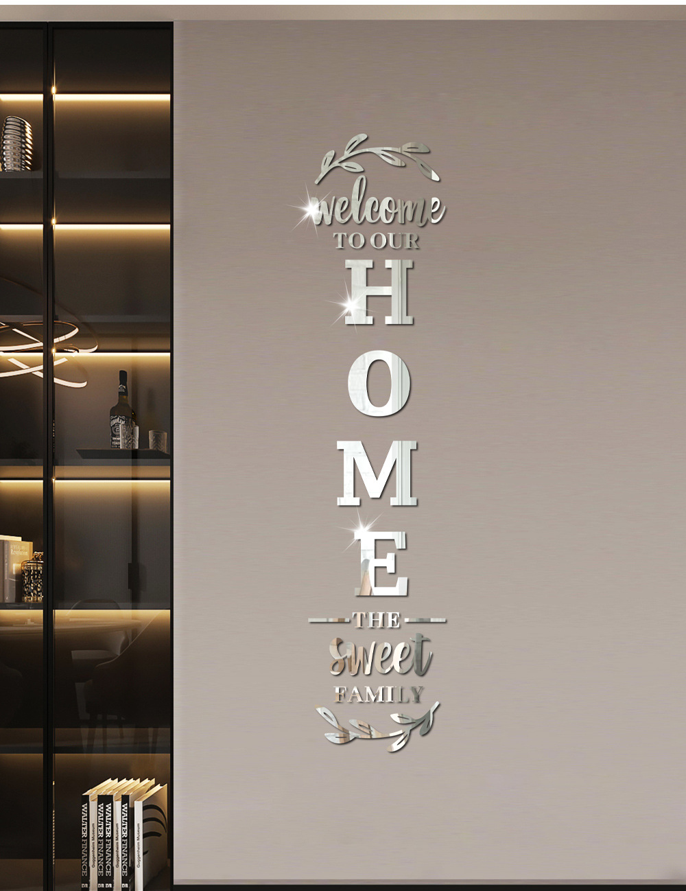 跨境亚克力镜面贴墙贴home欢迎来到温馨的家family橄榄枝软镜子贴