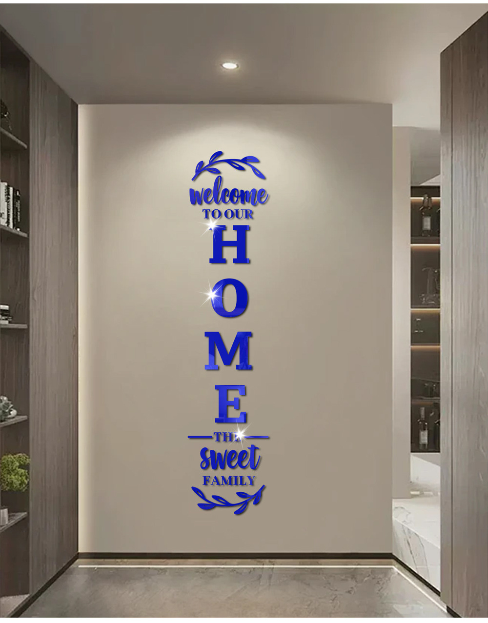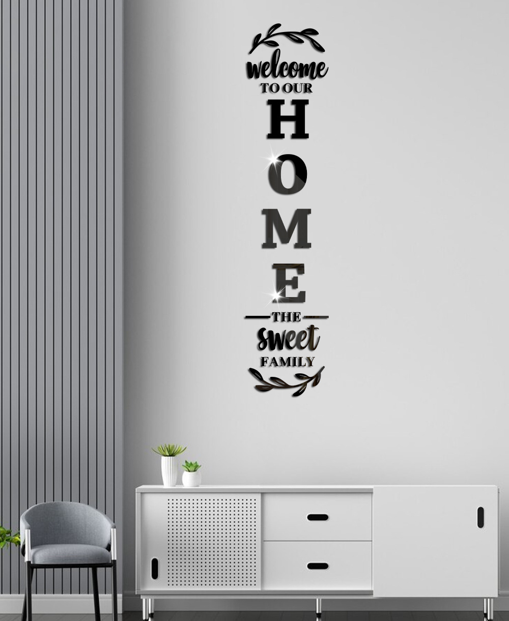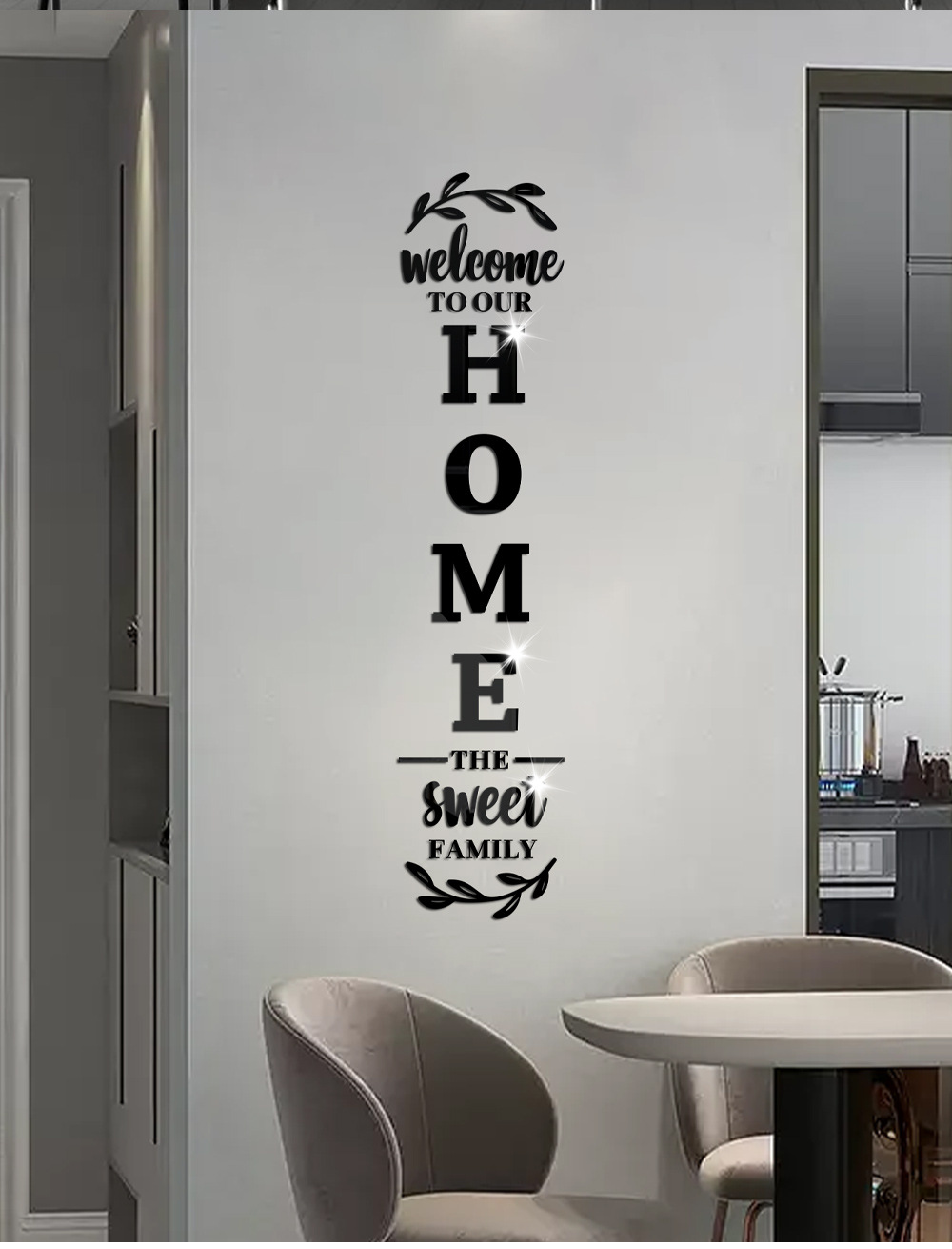 跨境亚克力镜面贴墙贴home欢迎来到温馨的家family橄榄枝软镜子贴