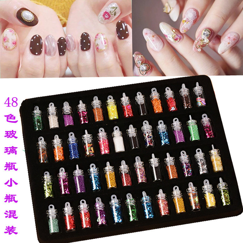 新款DIY史莱姆闪粉亮片玻璃珠贝壳粉套装48色玻璃瓶美甲饰品清新