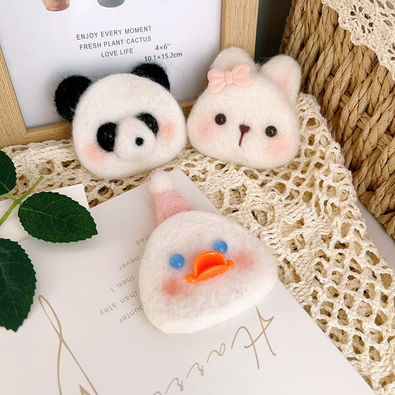 羊毛毡饰品配件戳戳乐成品兔子鸭子熊猫儿童发饰手工diy胸针材料