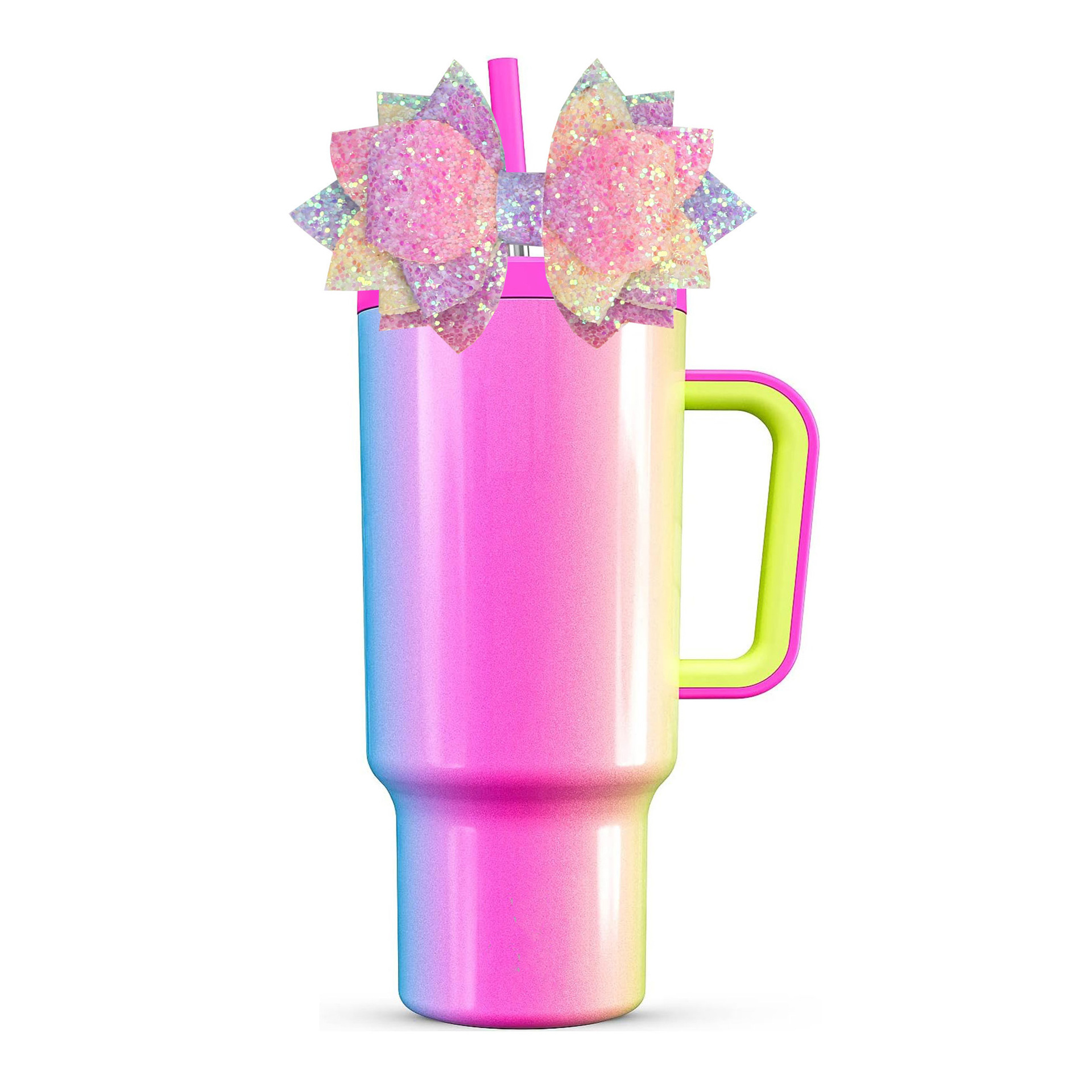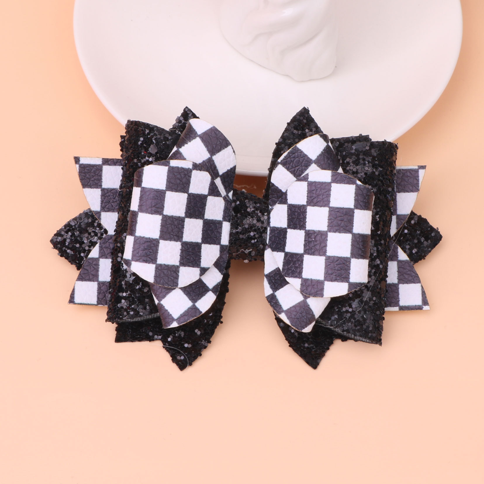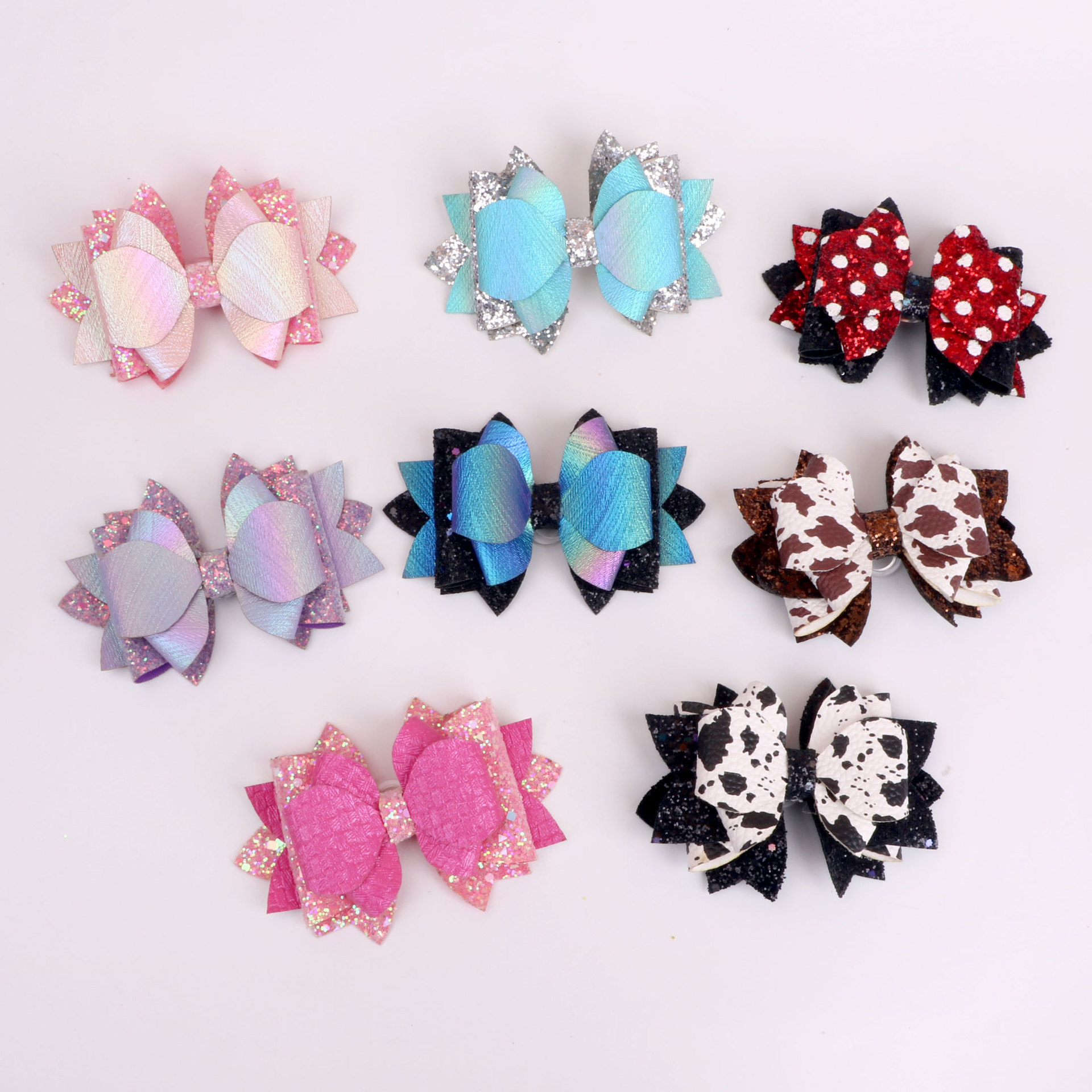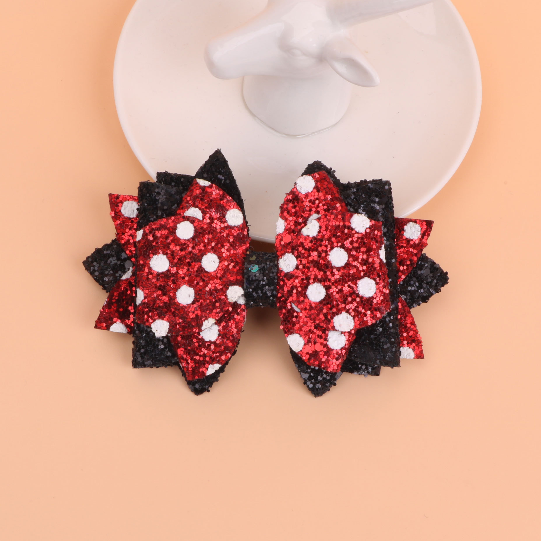 欧美垮境新款dyi格利特闪布皮革蝴蝶结杯子吸管皮筋扣配件饰品