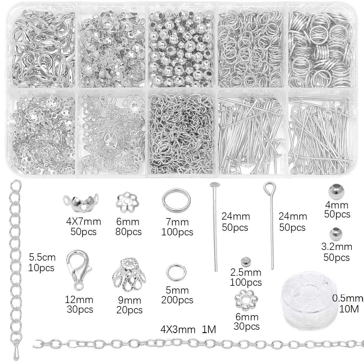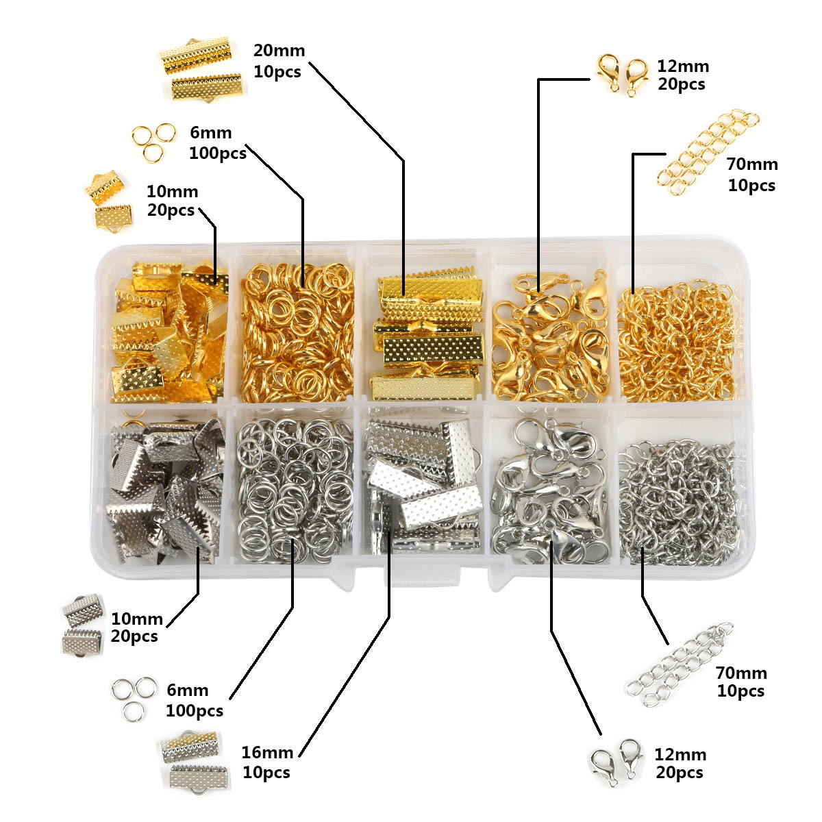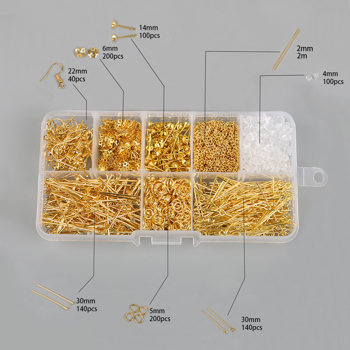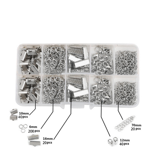 跨境热卖10格盒装饰品配件龙虾扣马仔扣开口单圈耳钩9字针DIY耳环
