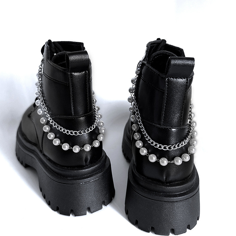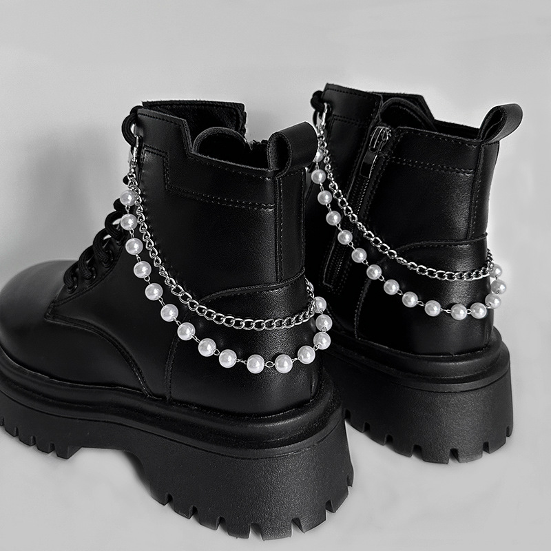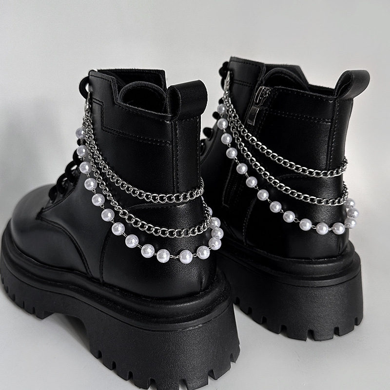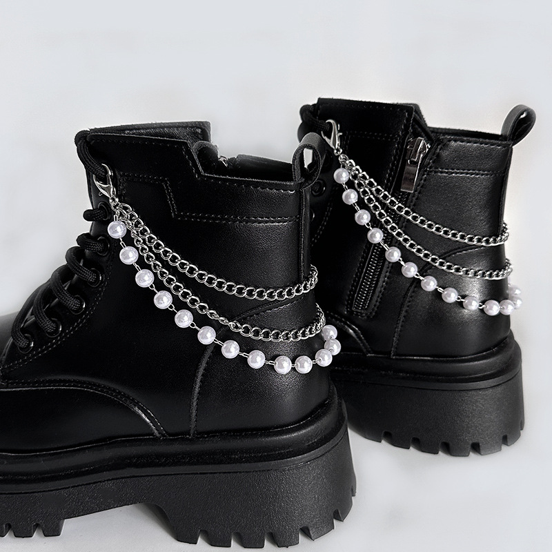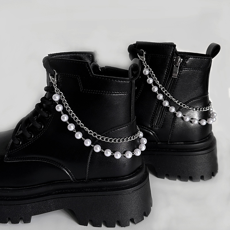 多层百搭珍珠不锈钢链条鞋配饰可拆卸设计感帆布鞋马丁靴鞋链饰品