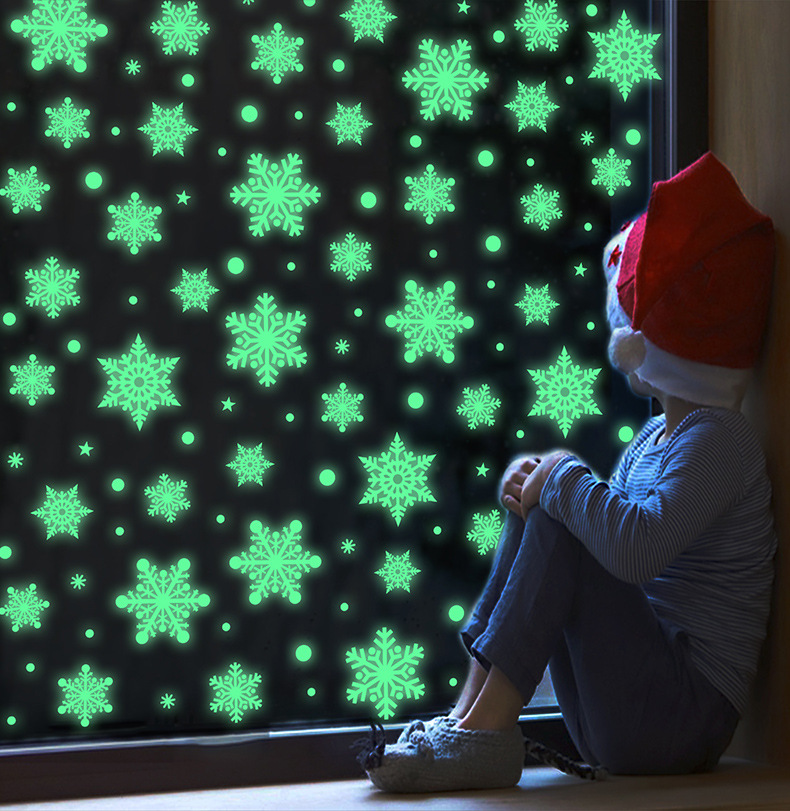 圣诞节装饰玻璃窗户贴纸夜光雪花片窗贴发光雪花荧光贴雪花静电贴