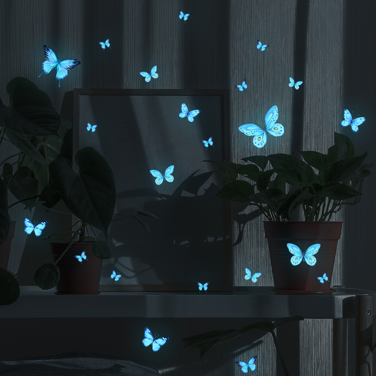 YCL1977夜光蓝光蓝色蝴蝶夜光贴客厅卧室家居装饰墙贴画自粘