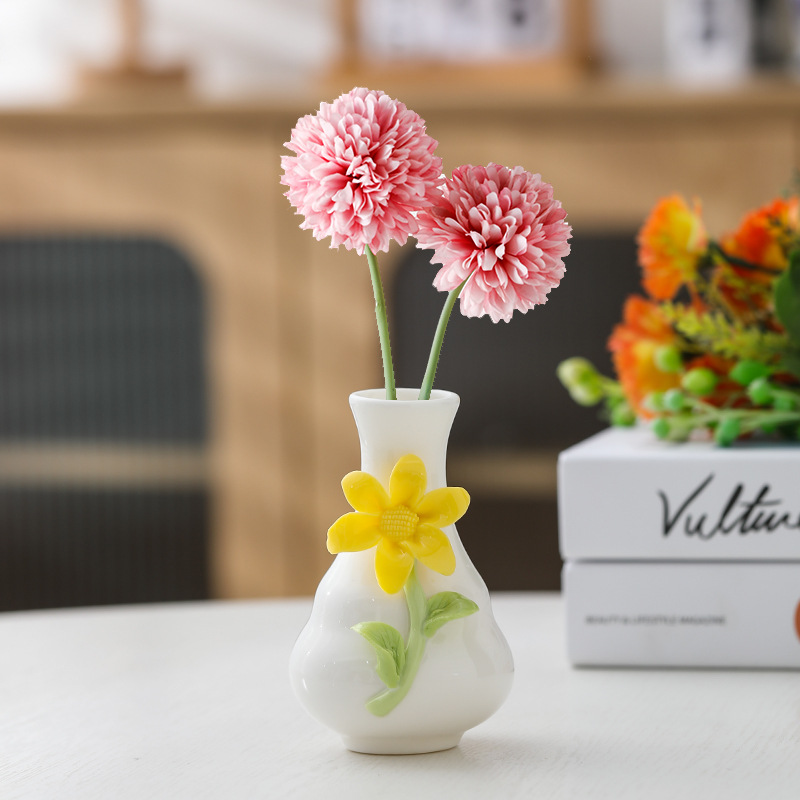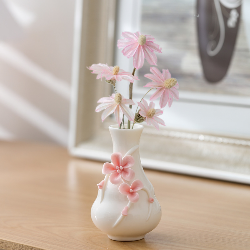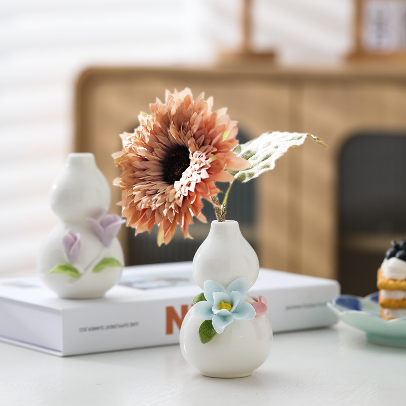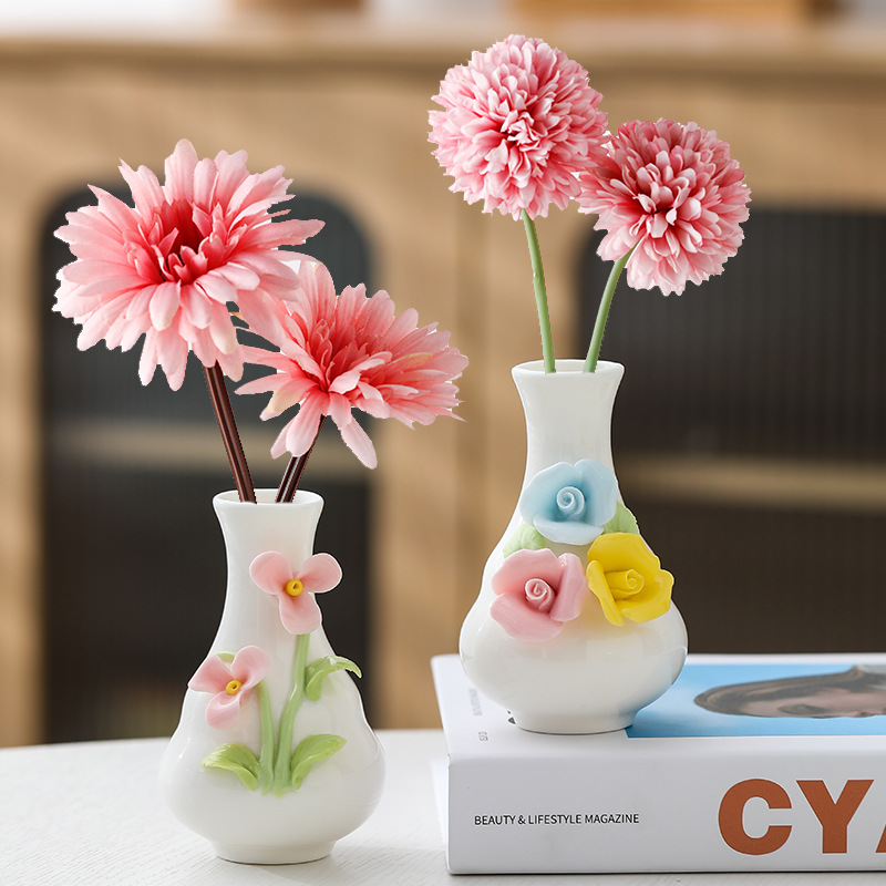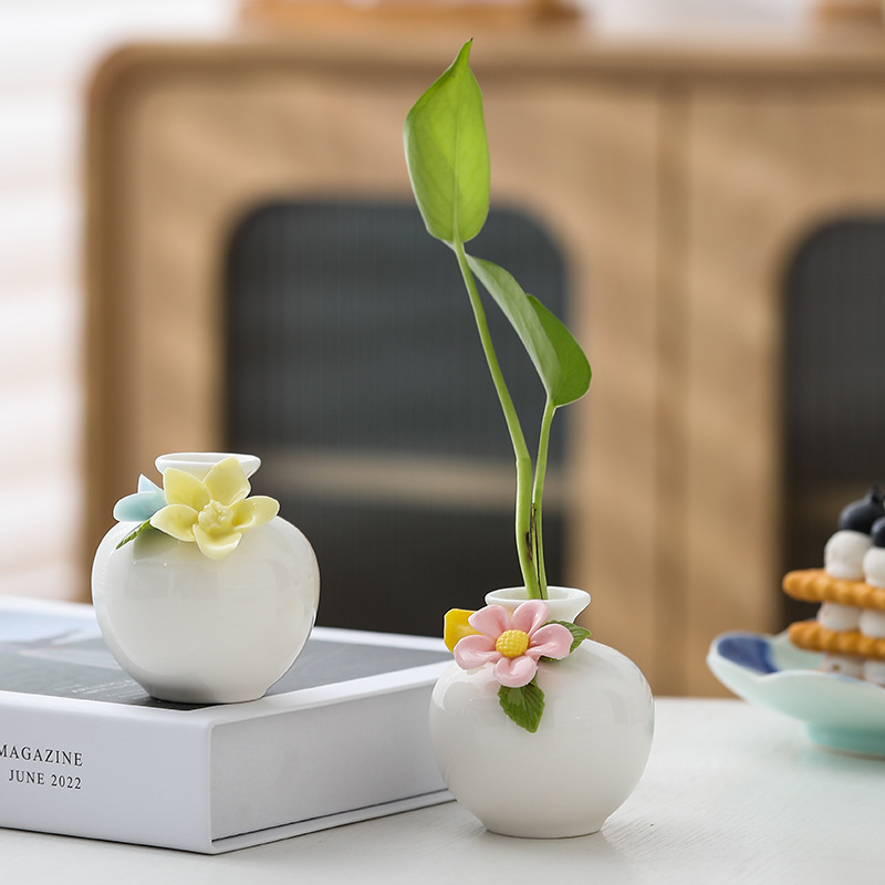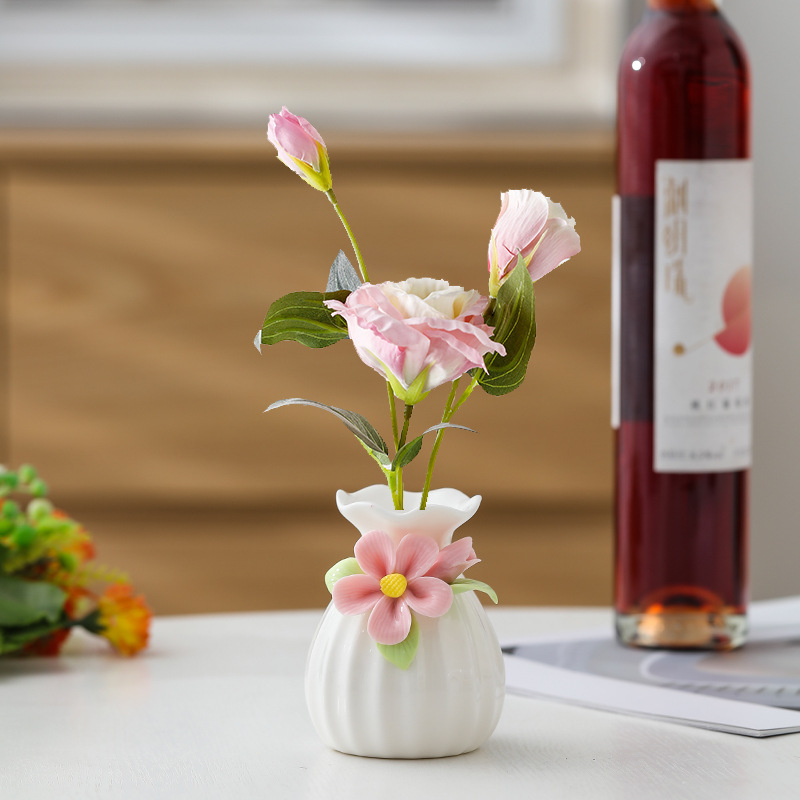 插瓶手工捏花创意小花瓶茶桌清新花器装饰摆件客厅小花插陶瓷瓶