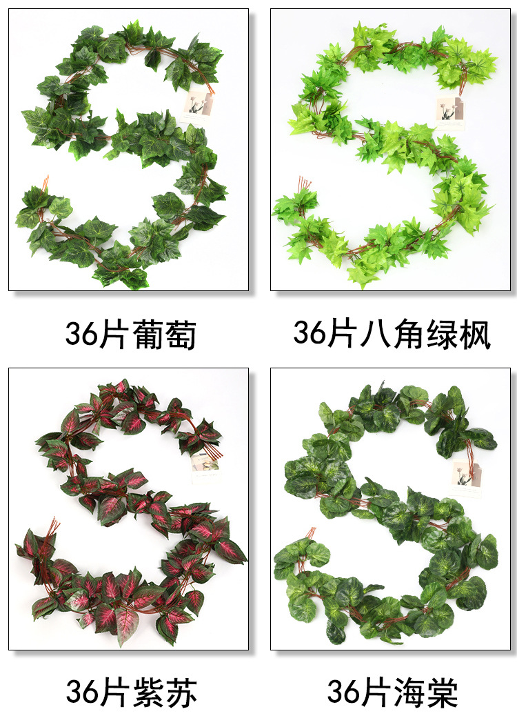 仿真葡萄叶假花藤条水管道装饰绿植物吊顶树叶子塑料藤蔓绿叶缠绕