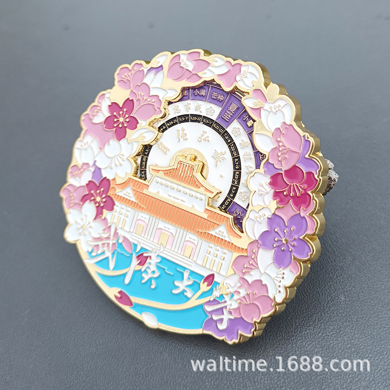 新款武汉大学旋转冰箱贴樱花烤漆金属礼品吸磁冰箱贴工艺品