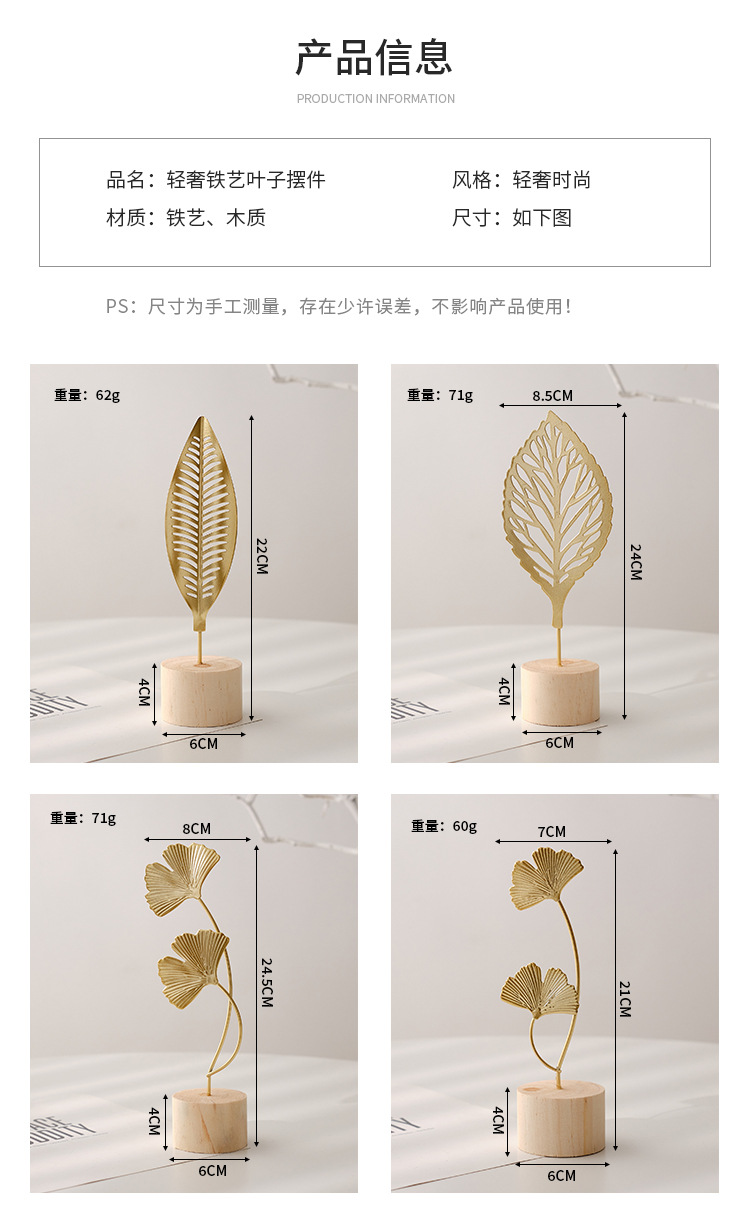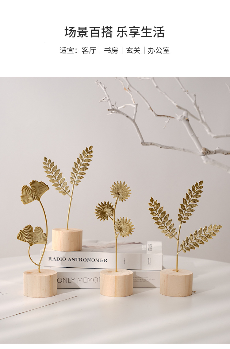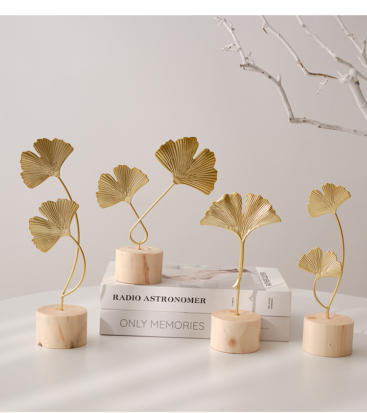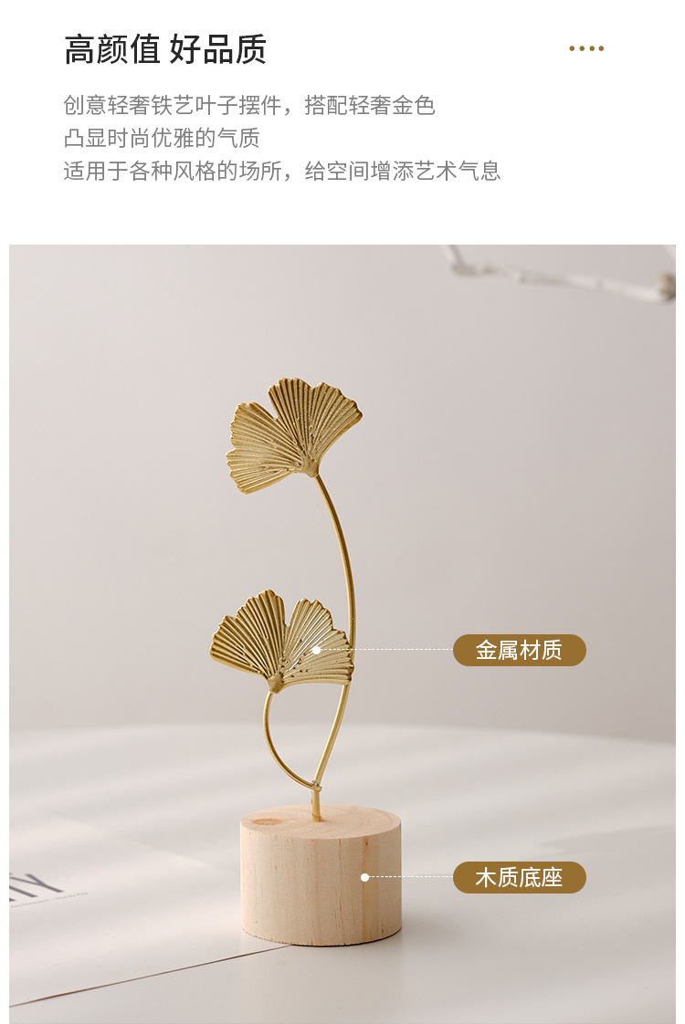 北欧风轻奢金属工艺品创意家居客厅玄关酒柜装饰品铁艺银杏叶摆件