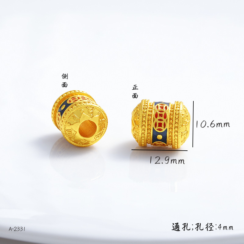 沙金强保色珐琅彩配饰批发古法diy桶珠手串手链滴油隔珠饰品配件