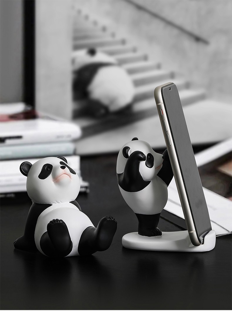 国宝熊猫搪胶手工手机支架摆件桌面家用iPad平板支撑装饰品送人