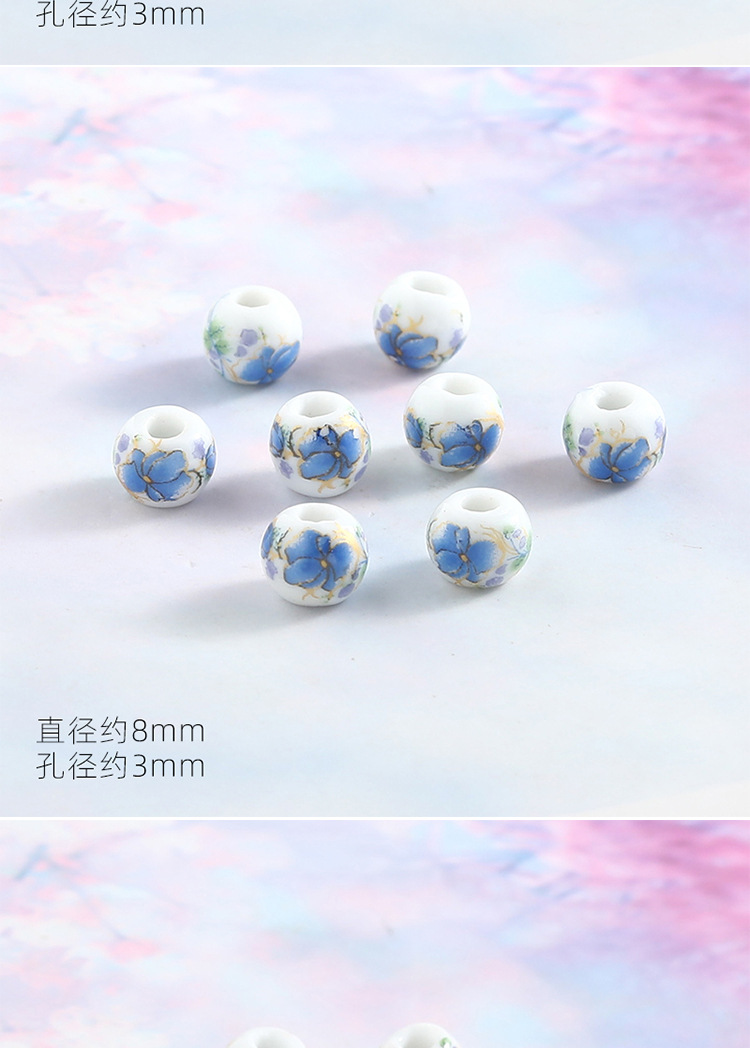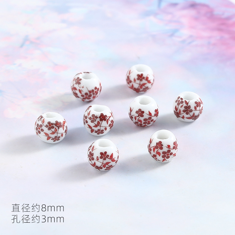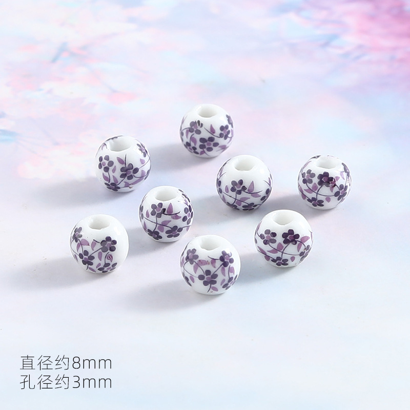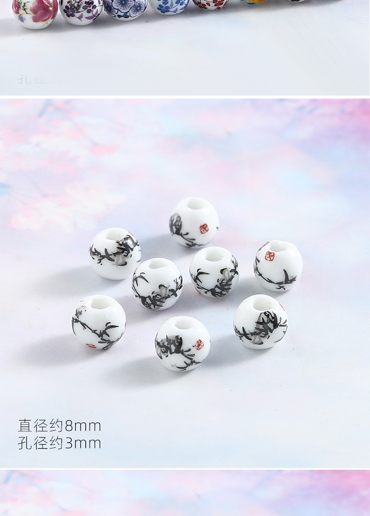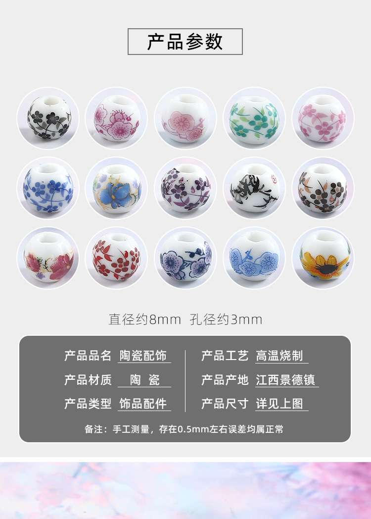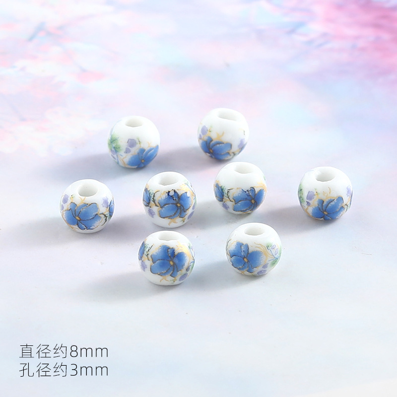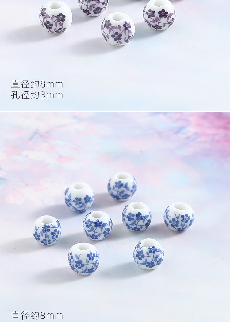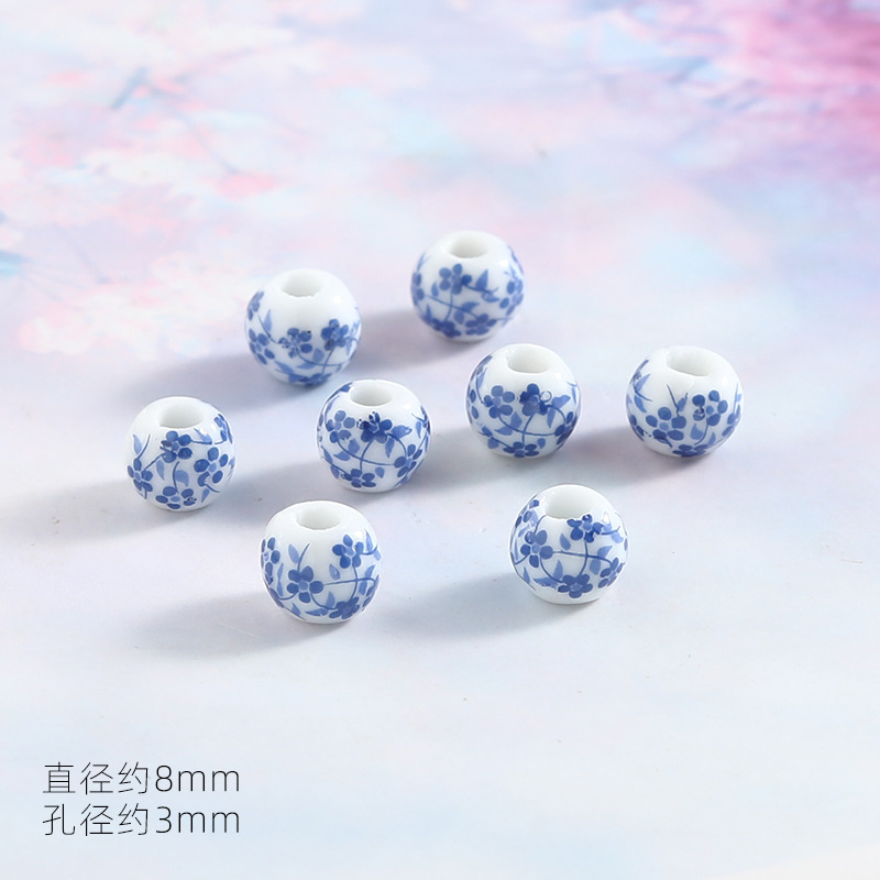 8mm青花陶瓷珠 手工艺品diy饰品配件串珠手串手链材料散珠配饰