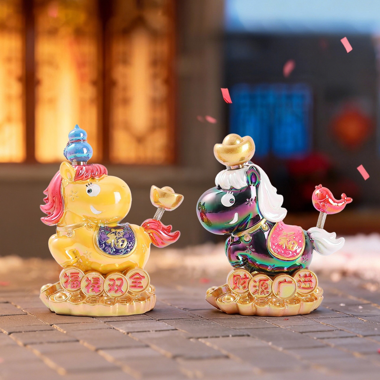 创意马年新款手办金马腾飞好运来转转盲盒客厅玄关装饰生肖马摆件