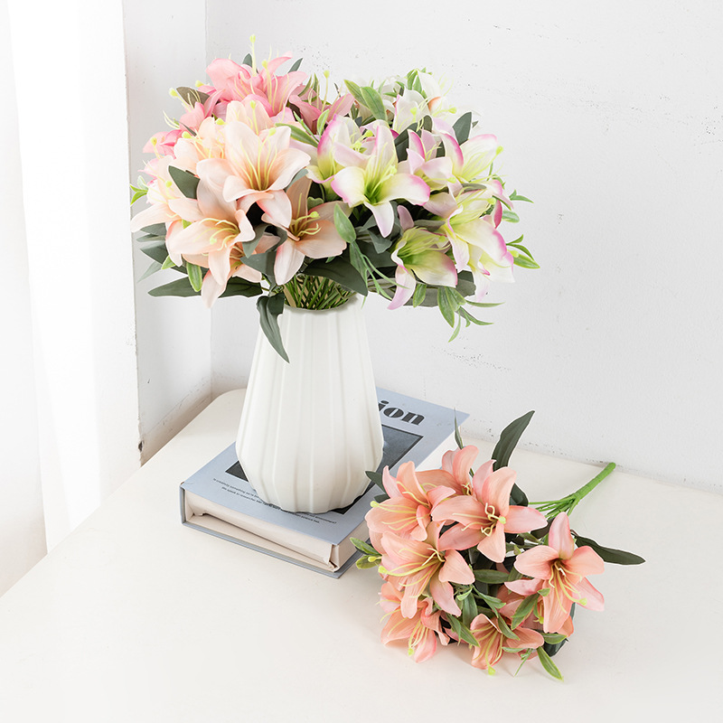 现货仿真百合3D手感假花 婚庆布置家居装饰多头小百合花跨境外贸