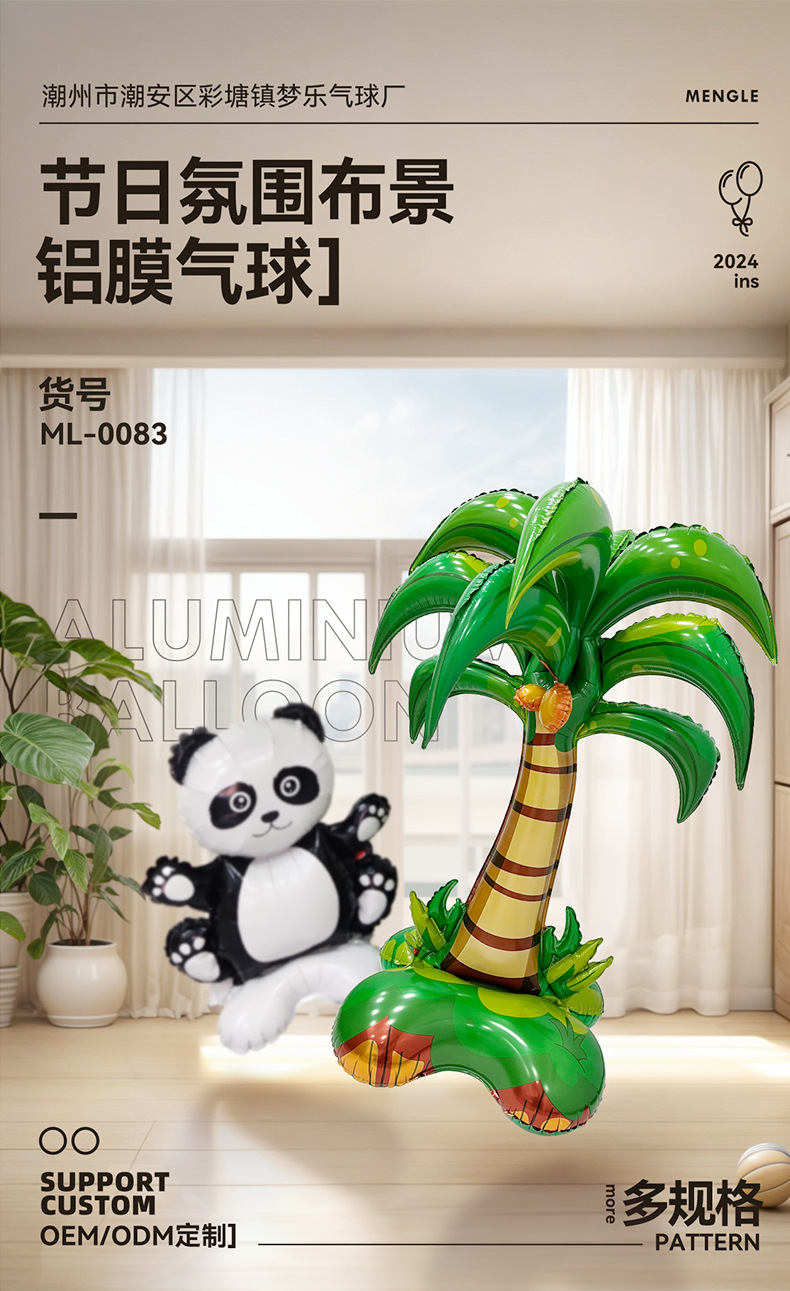 新品4D立体椰树气球 3件套椰树卡通铝膜气球生日装饰派对拍照气球