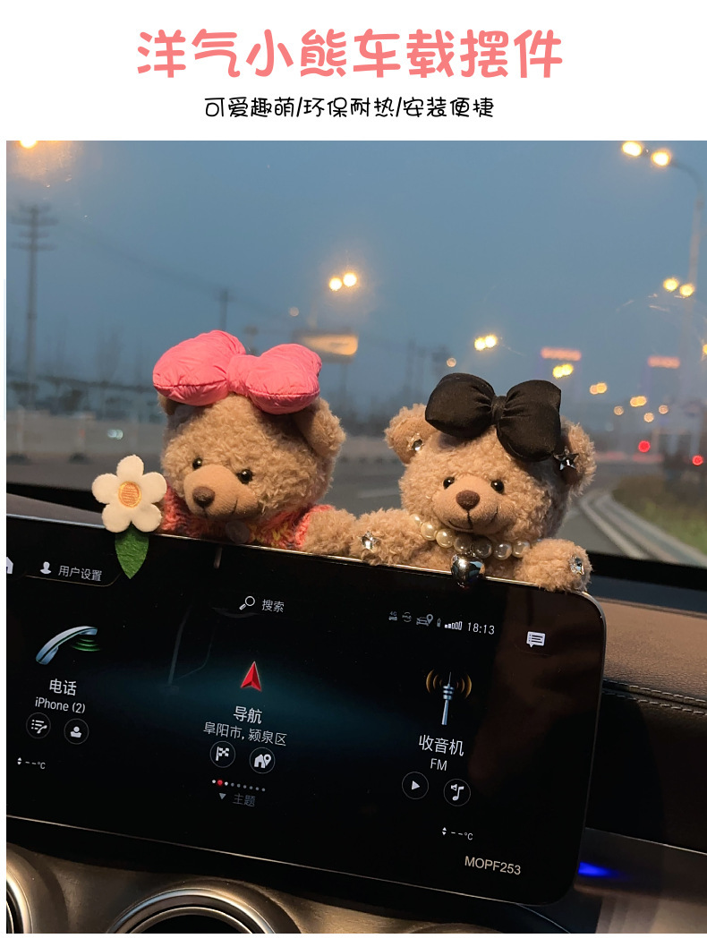 汽车创意可爱萌宠小熊屏幕摆件卡通车载装饰车内饰品爱车装潢女神