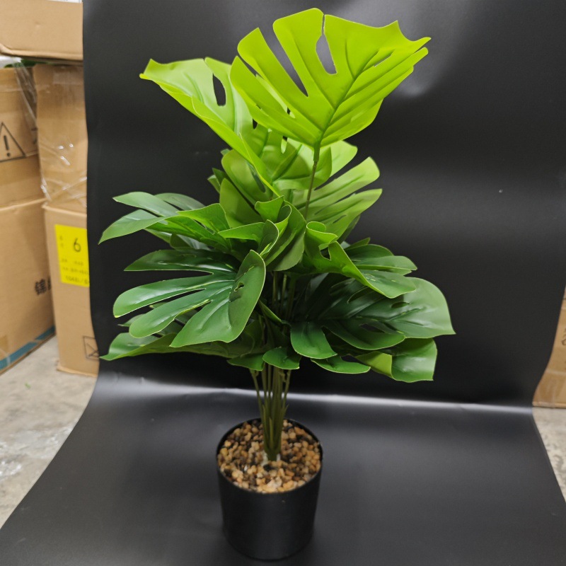 跨境新品仿真绿植绿龟背北欧风落地盆景家居客厅装饰婚庆粉色假花