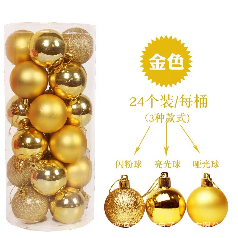 圣诞球 圣诞电镀球3cm/4cm/6cm/8cm电镀亚光球亮光球金粉球24个装