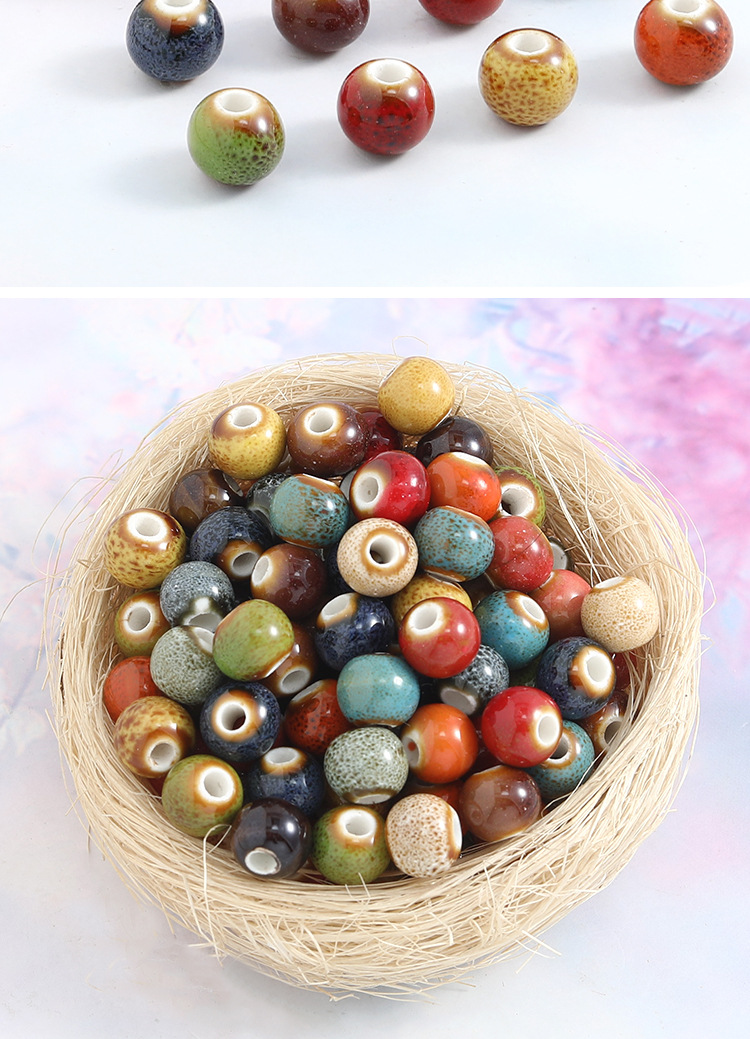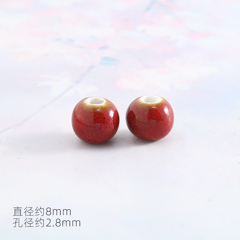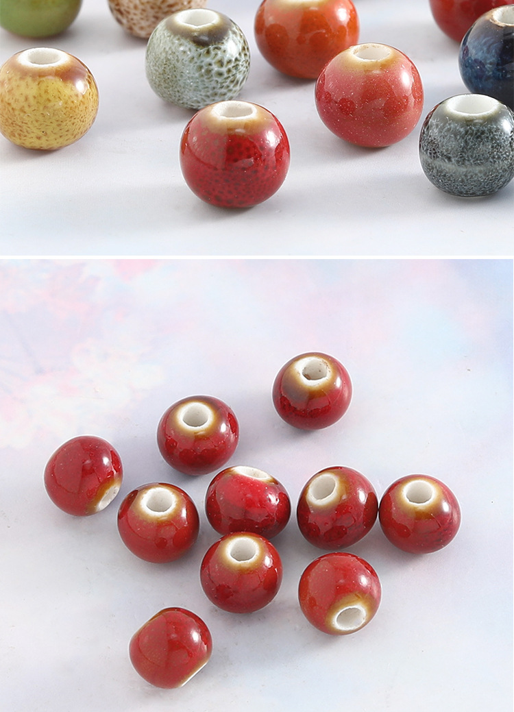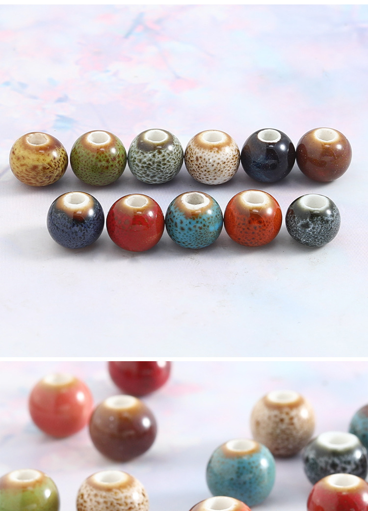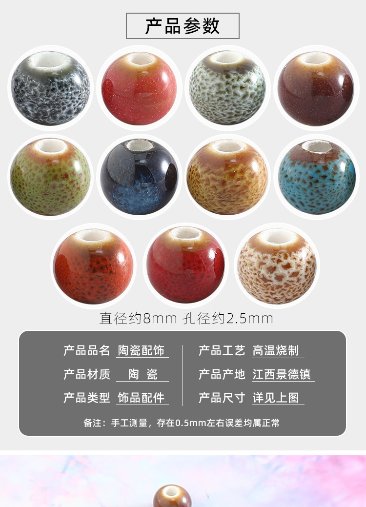 复古风珠子diy配饰混装8mm花釉圆陶瓷散珠景德镇陶瓷珠手串配件