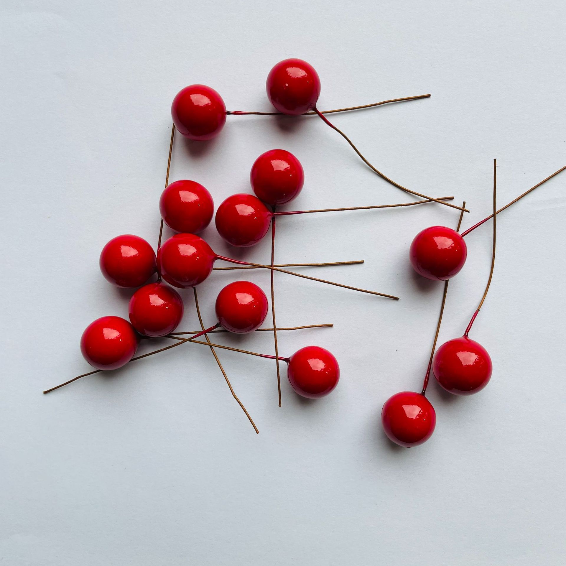 圣诞小红果 仿真小浆果泡沫红果小红豆圆球DIY手卷枝配件花环配件