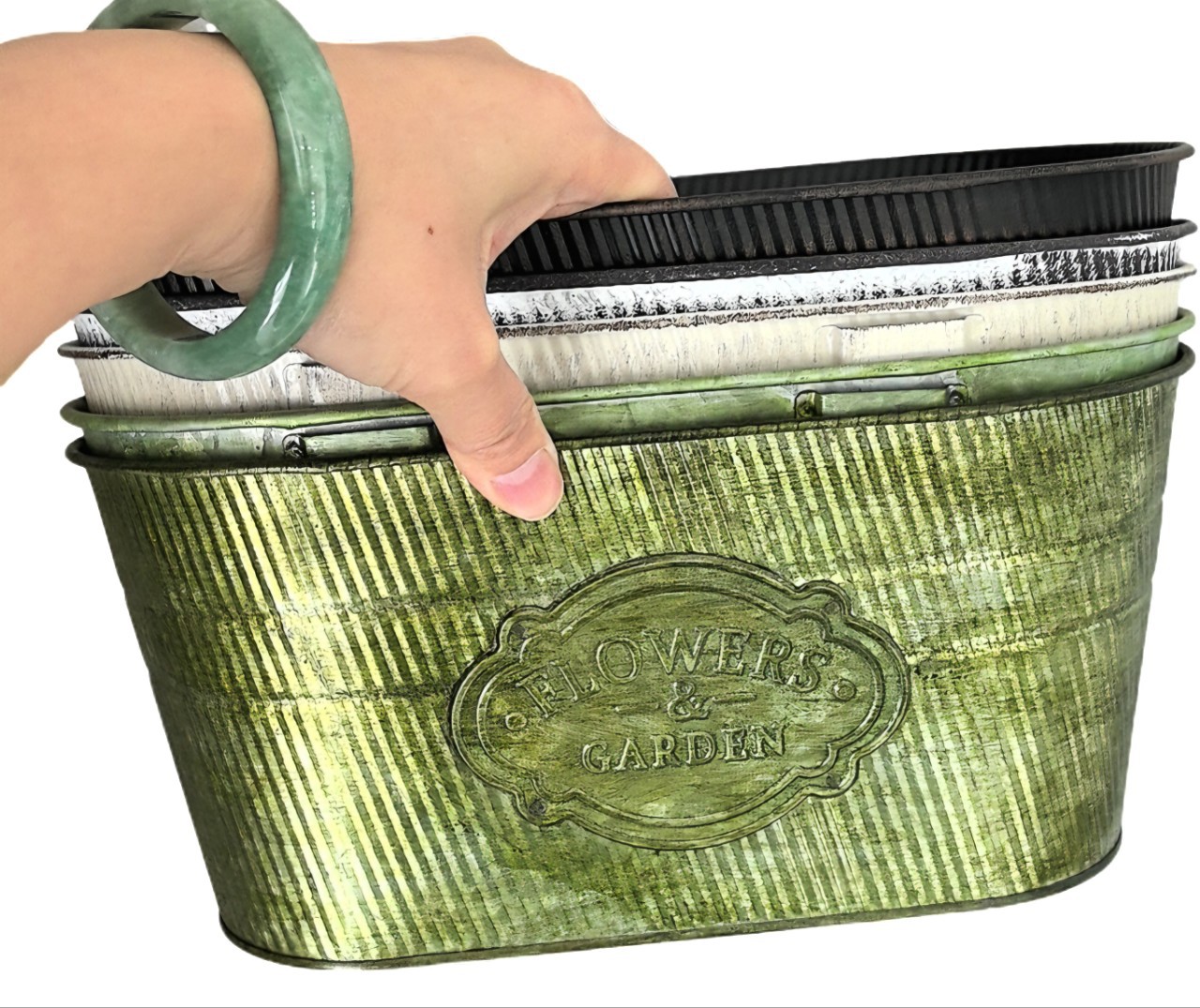 跨境亚马逊独立包装 字母复古悬挂做旧镀锌铁皮花盆