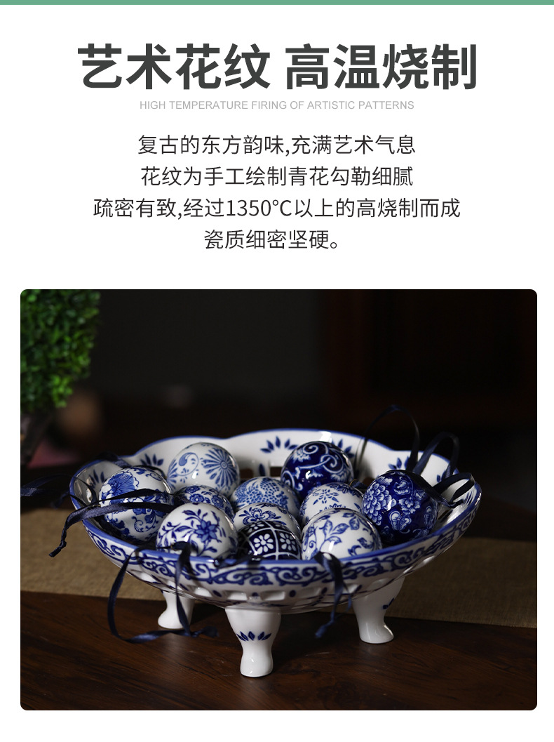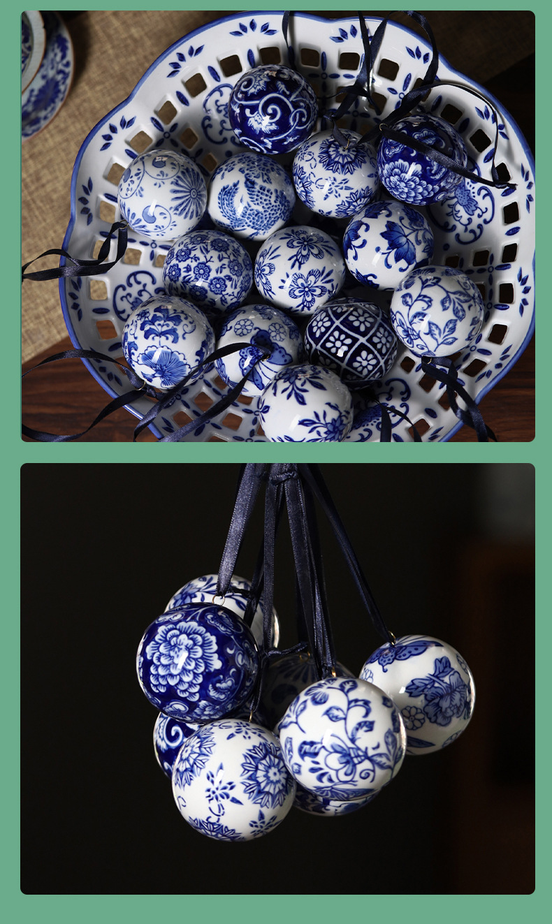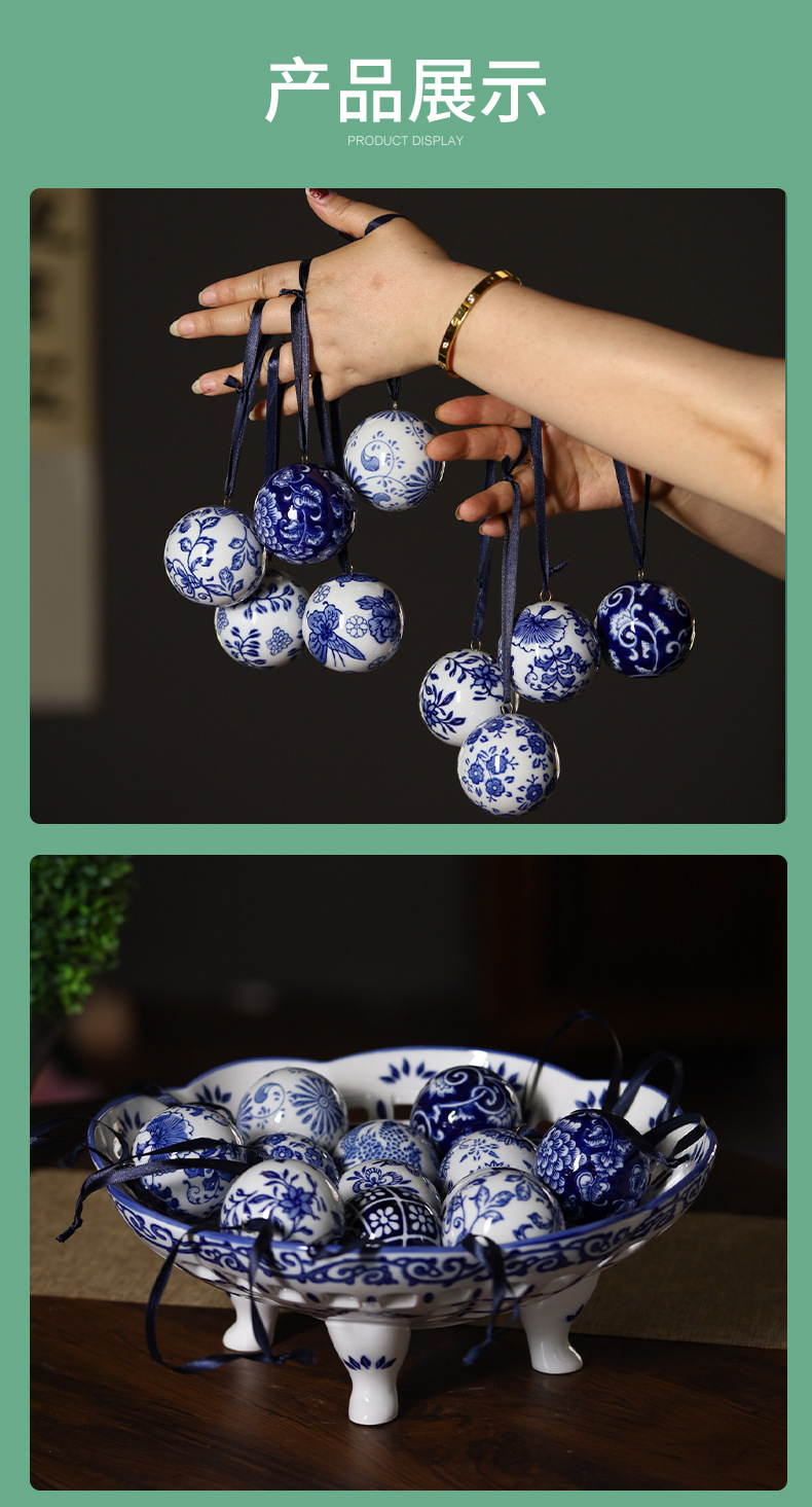 景德镇青花球吊坠车载挂件陶瓷饰品圣诞挂饰吊坠球青花瓷陶瓷球