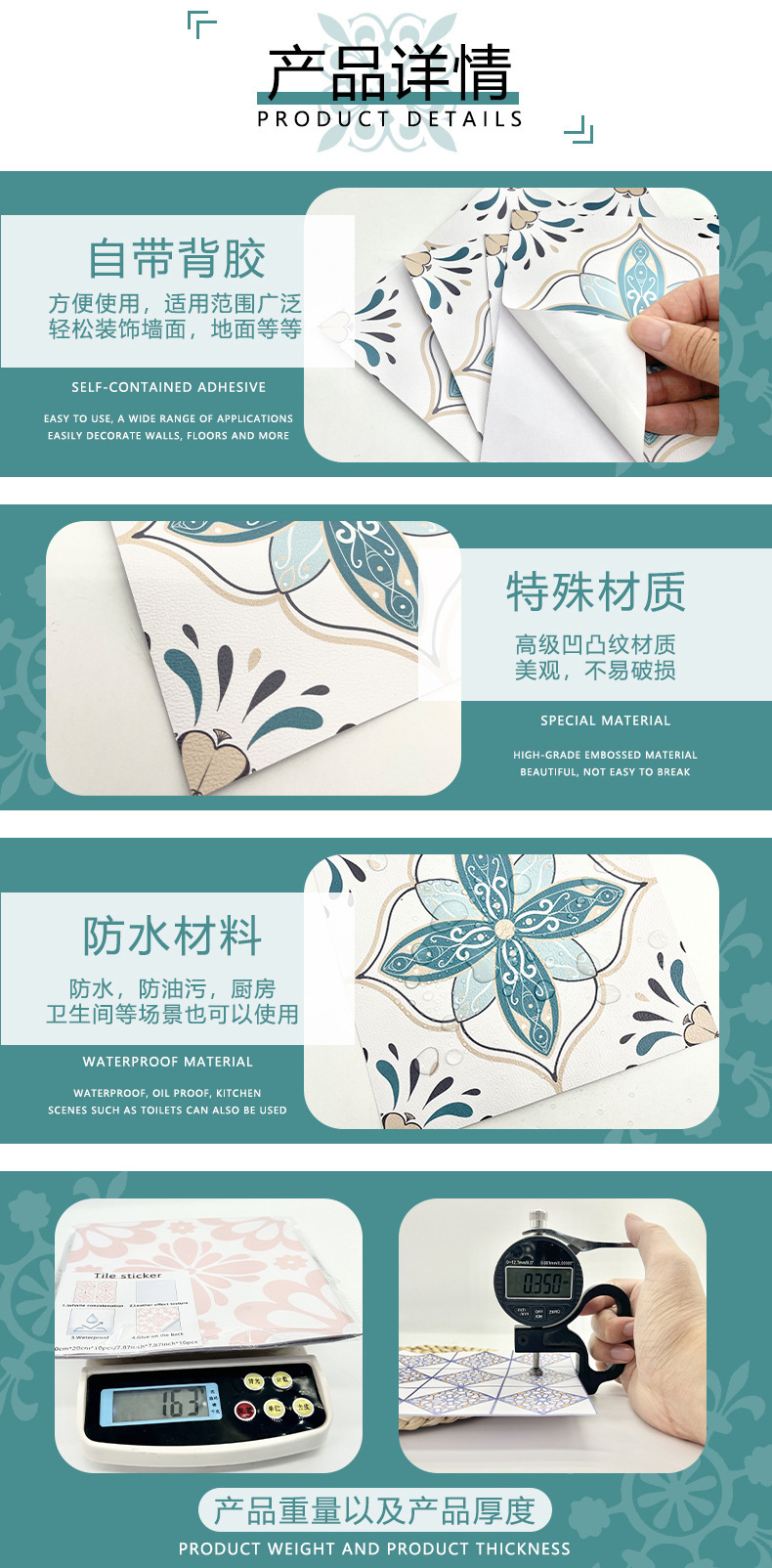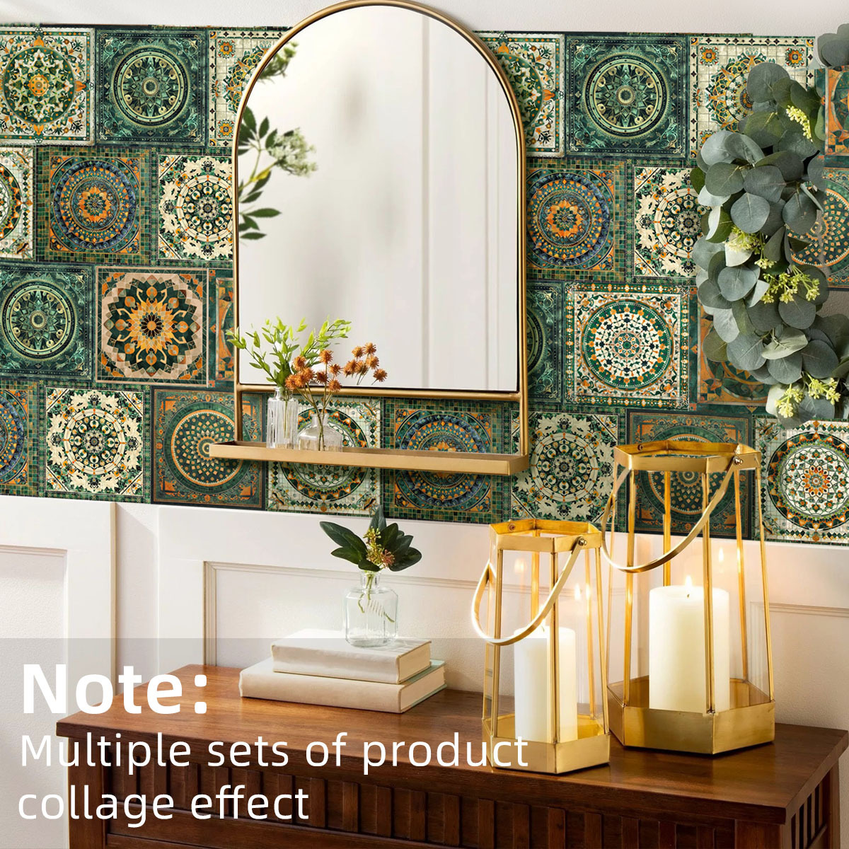 ACZ11000新款复古瓷砖墨绿色花砖墙贴厨房装饰壁纸墙贴瓷砖贴自粘