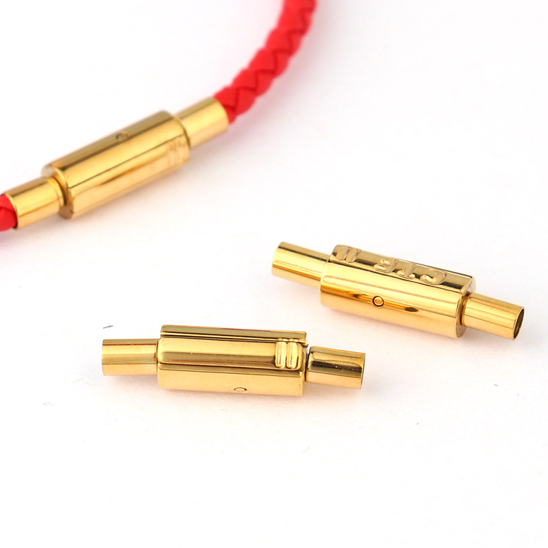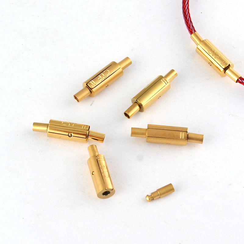 周家不锈钢圆柱扣皮绳钢丝绳手链按扣钛钢饰品手绳配件扣可穿黄金