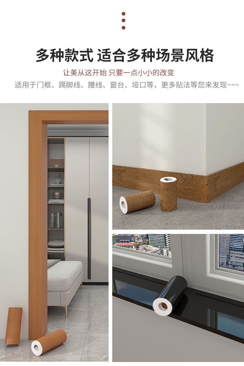 木纹腰线踢脚线自粘贴纸墙角线门框边框装饰条10米翻新防水防潮贴