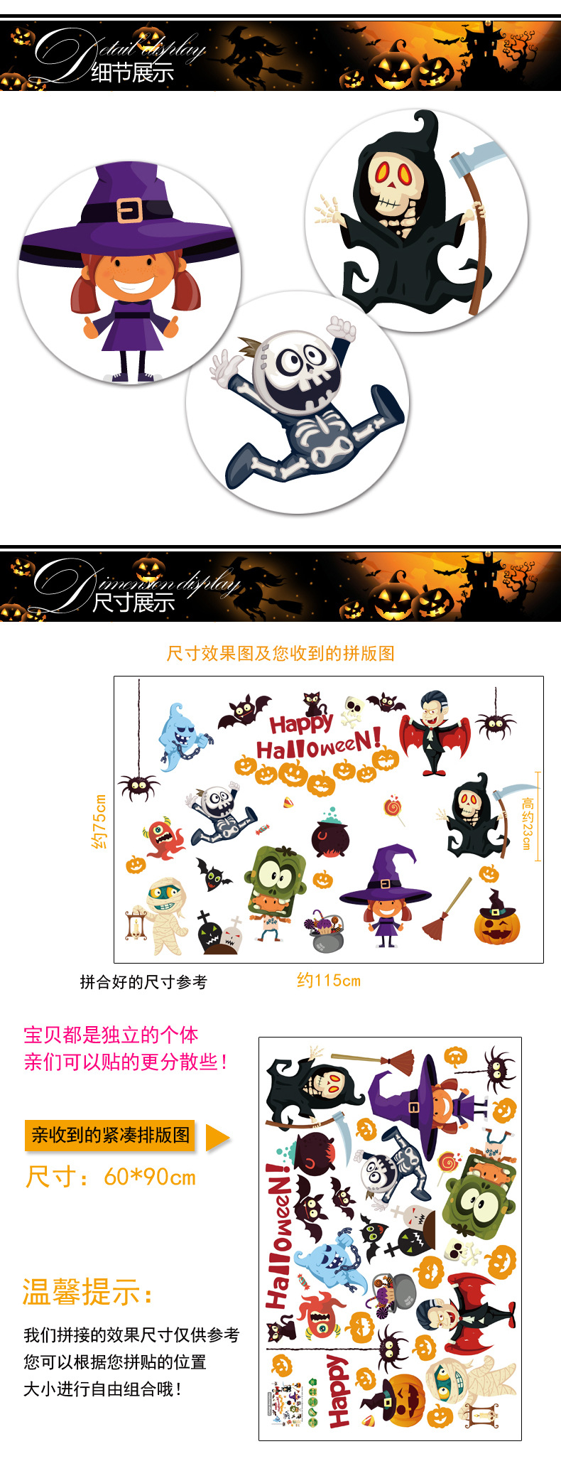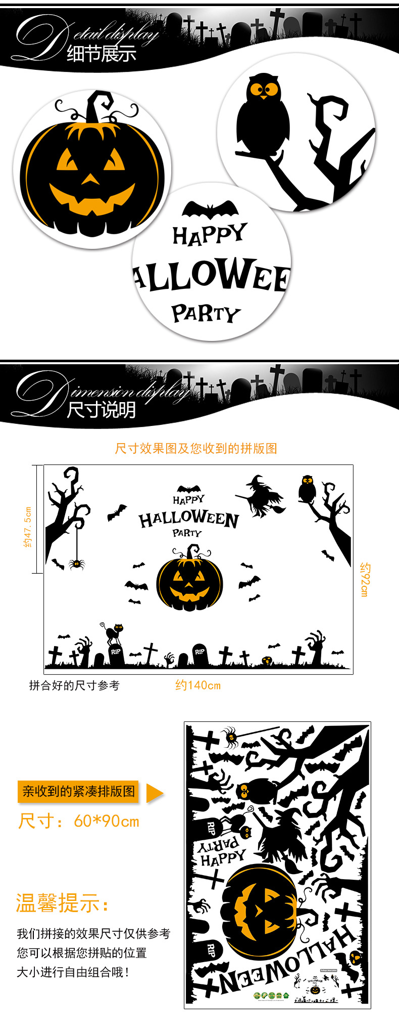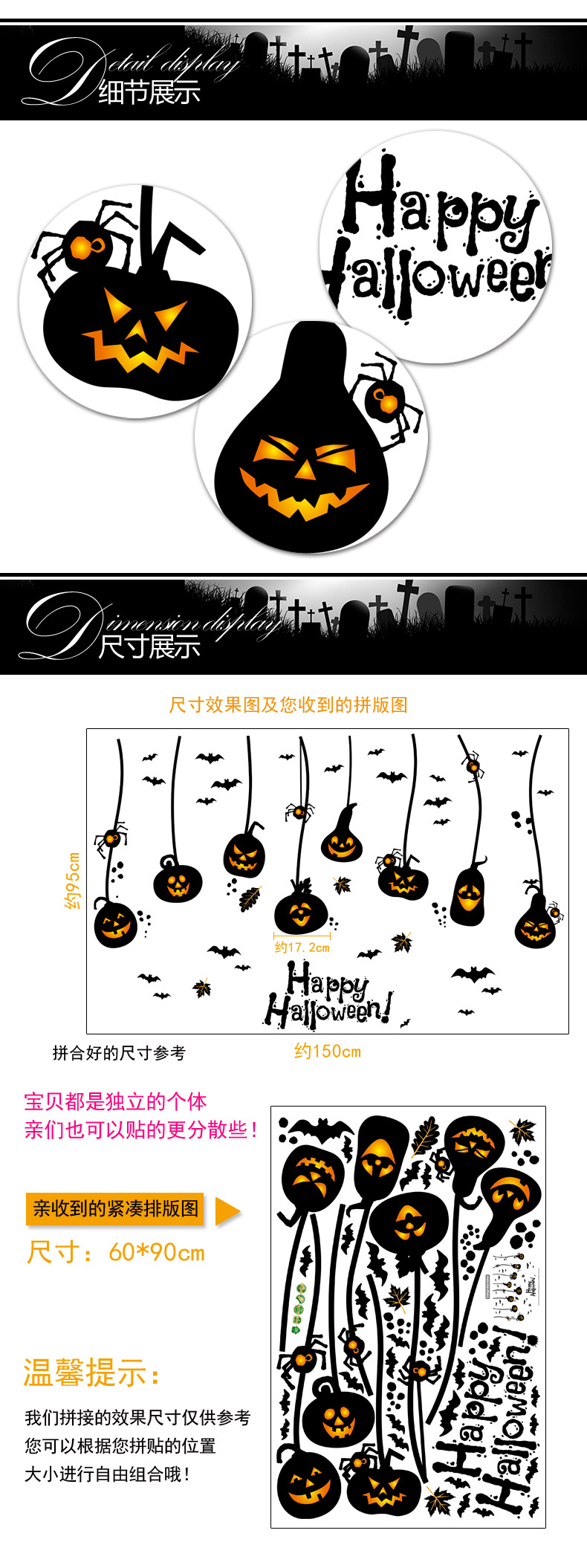 万圣节墙贴南瓜蜘蛛幽灵窗户贴纸可移除贴花多款适用于派对假日