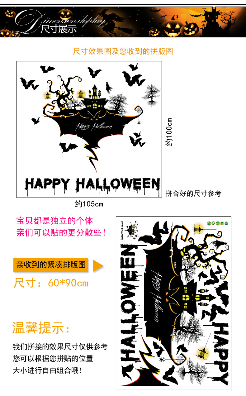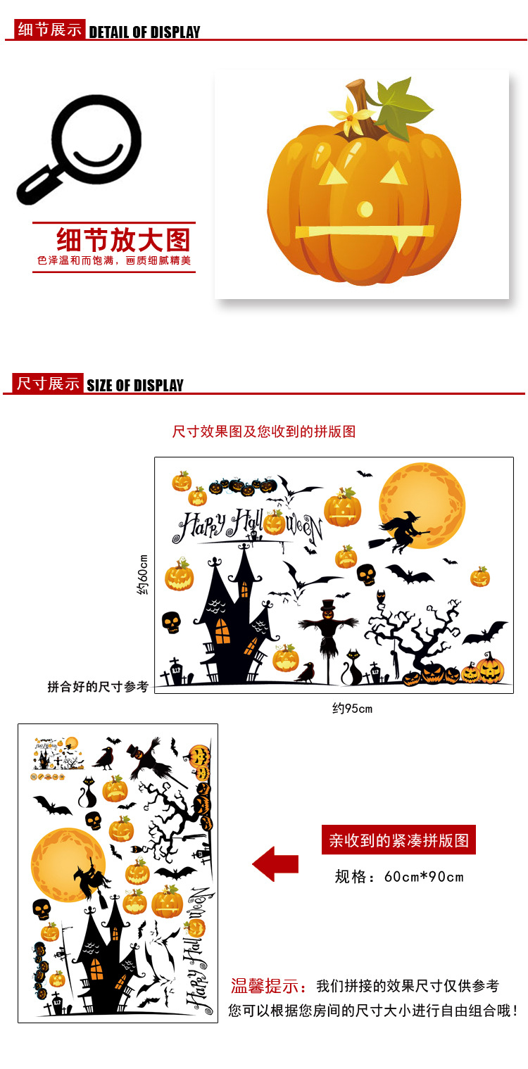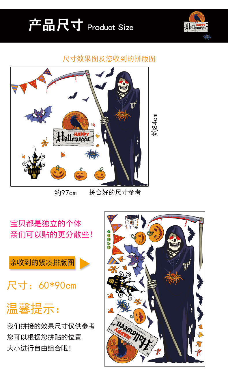 万圣节墙贴南瓜蜘蛛幽灵窗户贴纸可移除贴花多款适用于派对假日