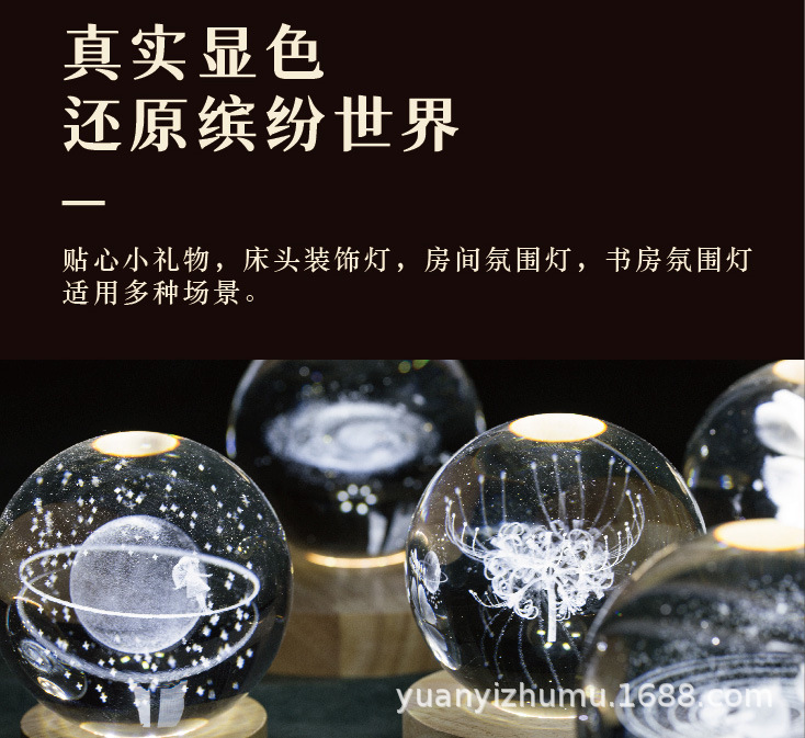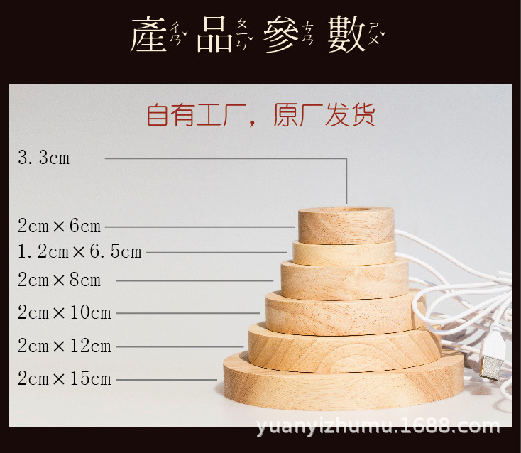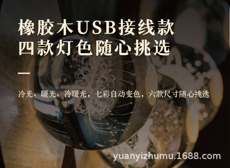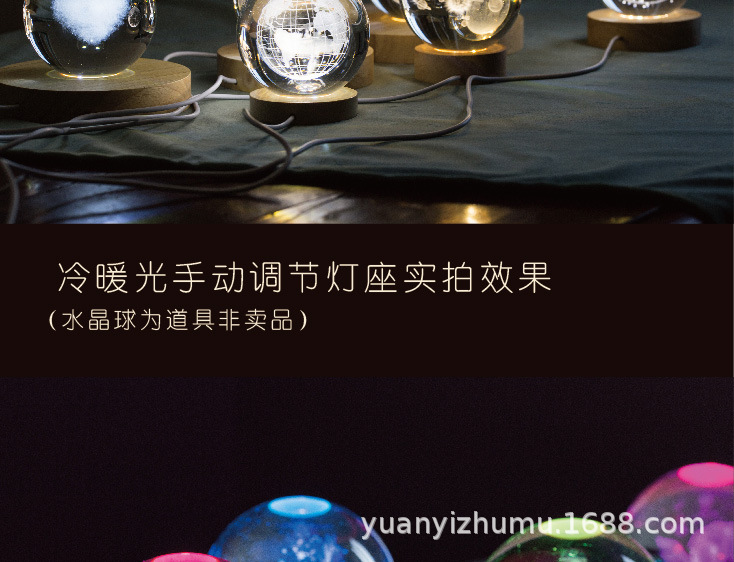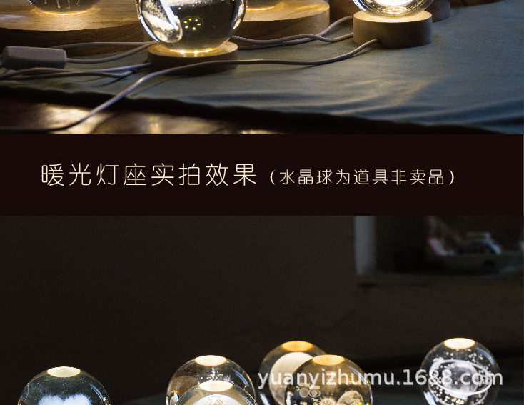 圆形实木发光底座LED小夜灯香薰扩香石灯座水晶球底座工艺品摆件
