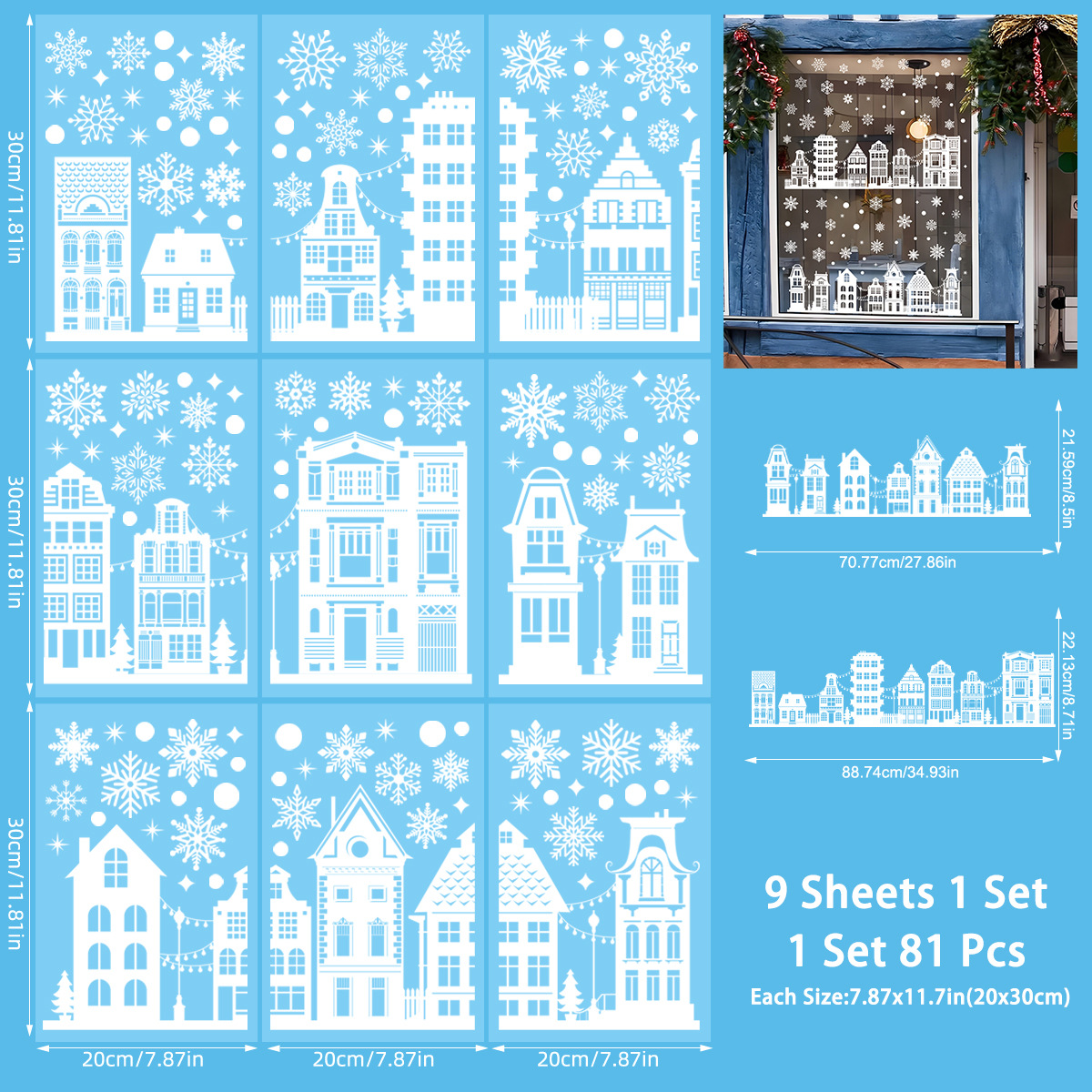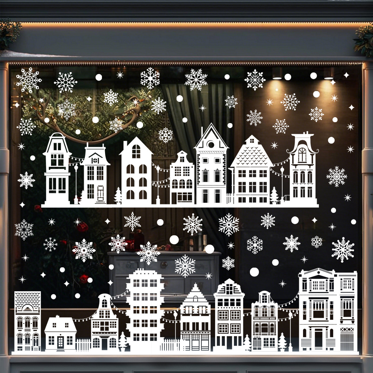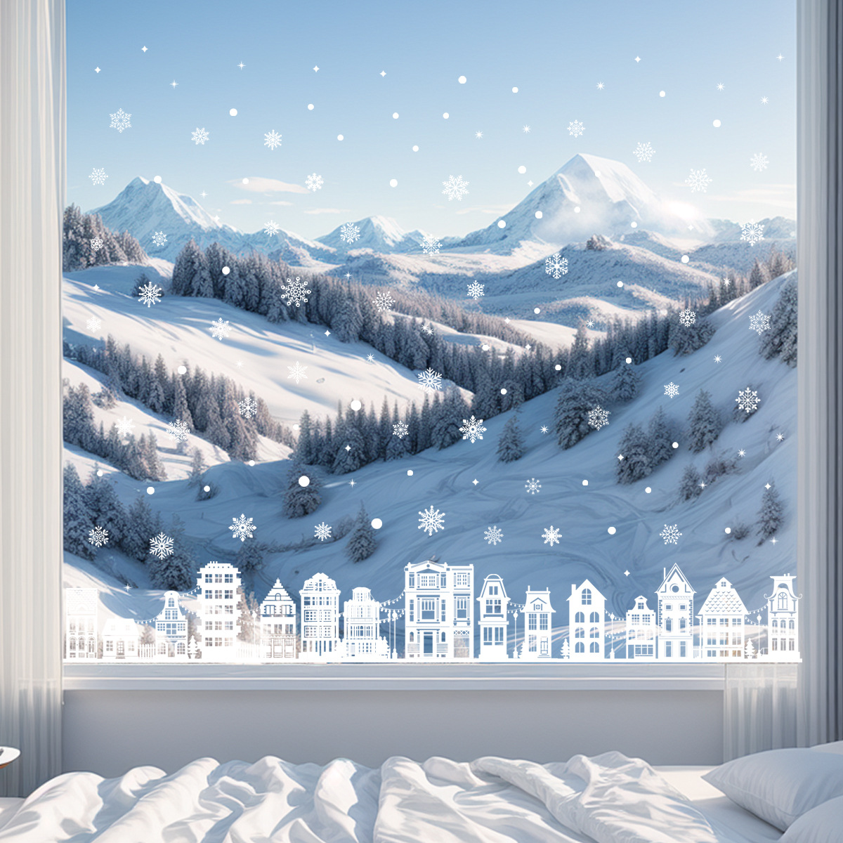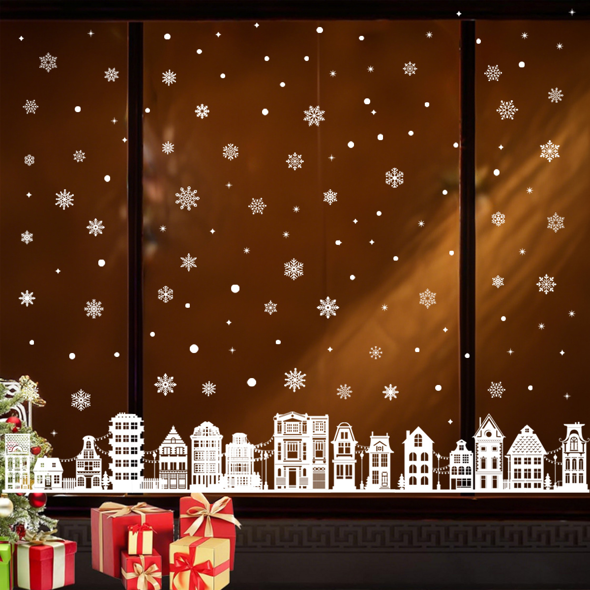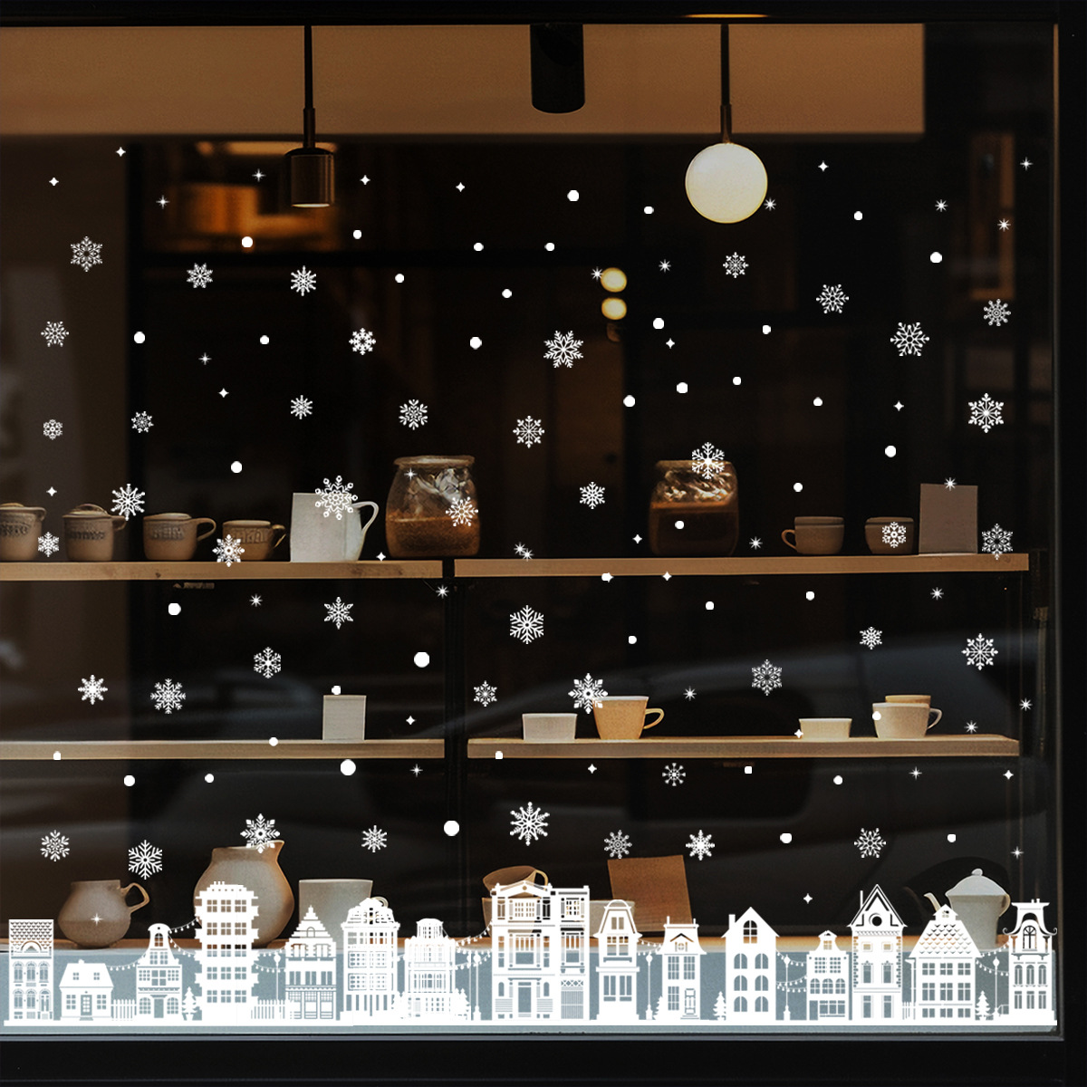 亚马逊新款圣诞节窗贴白色城市剪影冬季圣诞节橱窗玻璃门装饰贴