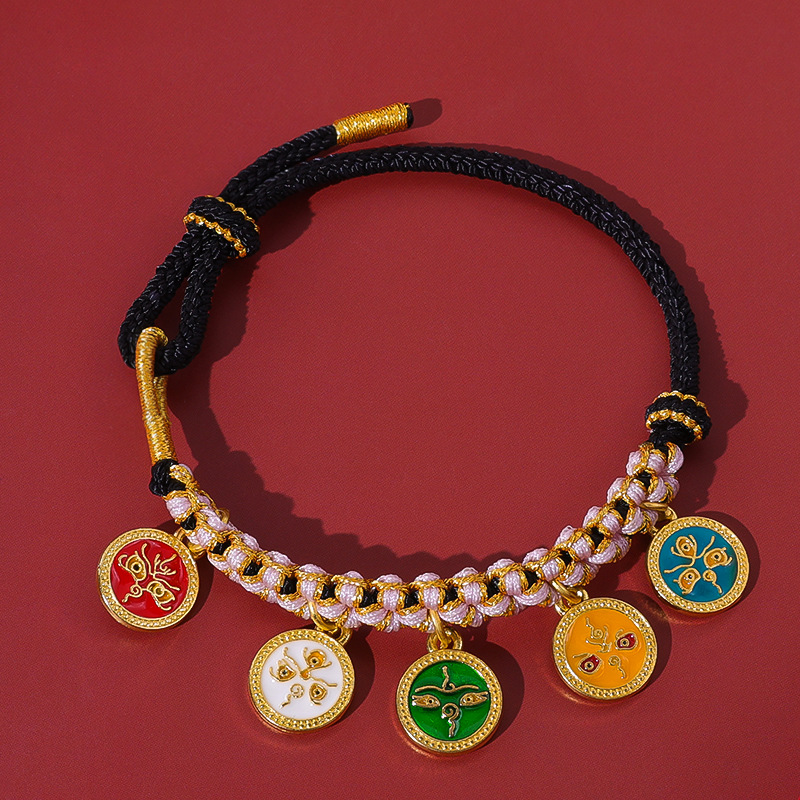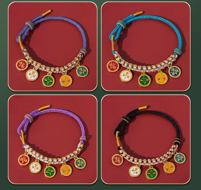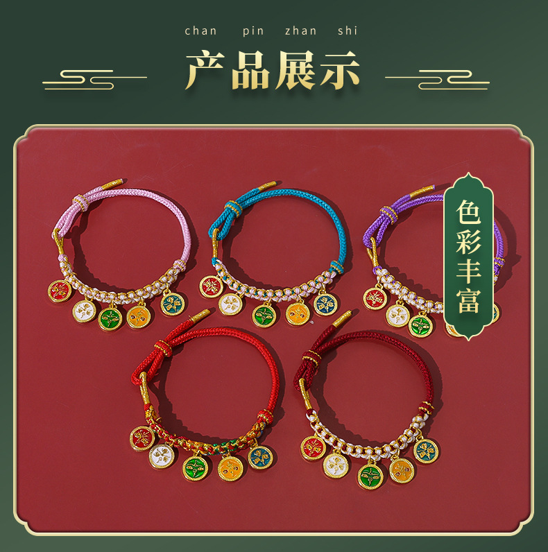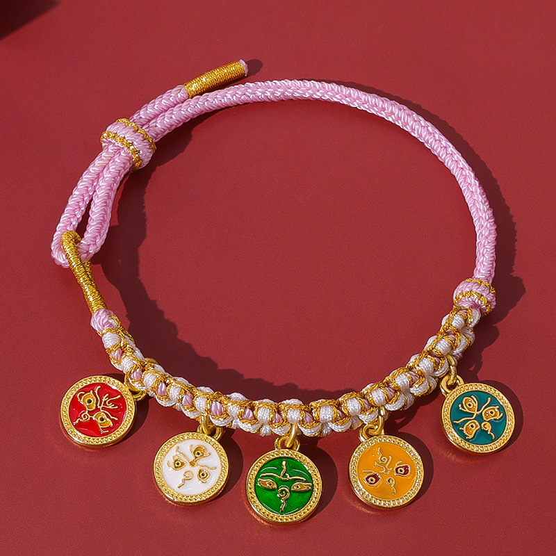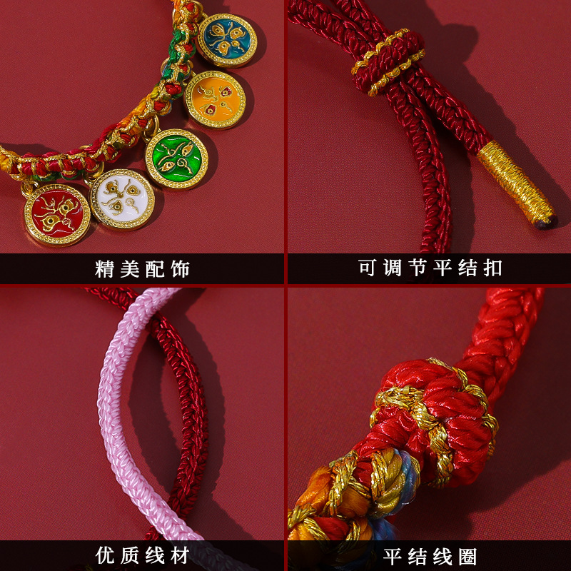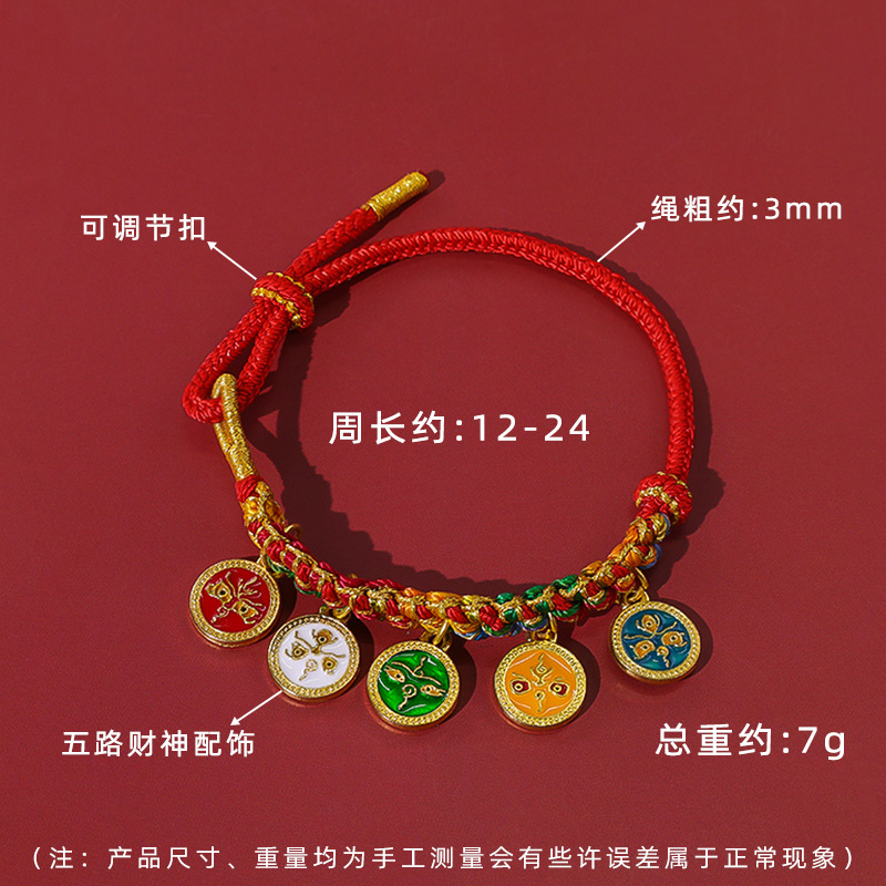 景区桃花结手链藏式五路财神手绳情侣红绳男女diy黄金手绳编织绳