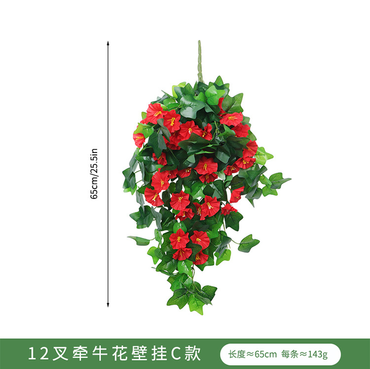 仿真牵牛花壁挂12叉垂吊仿真绿植装饰花墙壁婚礼布置仿真绿植