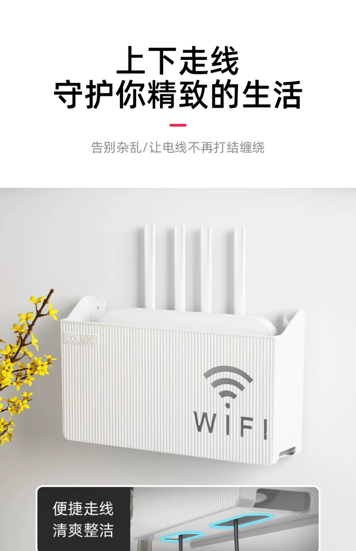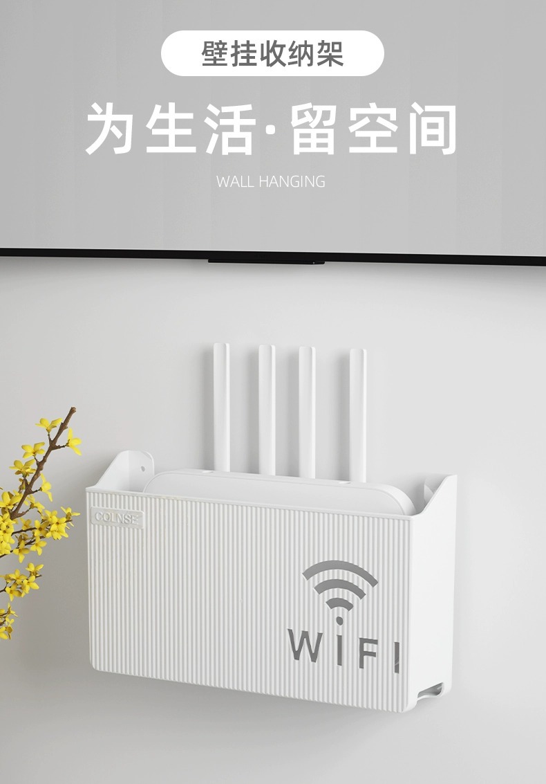 爆款壁式收纳盒无线wifi电视机顶盒路由器置物架免打孔收纳盒壁挂